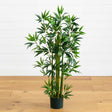 Throughout recorded history, bamboo has inspired artisans, philosophers, healers, and even warriors. Now it inspires you! In response to its popularity, our bamboo family has grown to include this 4’ bamboo silk plant that contains nine stalks and 540 leaves. It comes pre-arranged in a black plastic pot. Display this silk tree by itself, or combine it with our other silk bamboo plants and trees to create an indoor bamboo garden.
