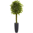 The expertly designed and well-made braided artificial ficus tree has an elegant, exotic braided trunk and incredibly realistic, rich leaves, all contained in a gray cylinder planter topped with matching river rocks. Easy to fit in a tighter space, place this in a corner in your hallway or near your entrance to add some excitement to an often overlooked space. Perfect for indoor or outdoor use.