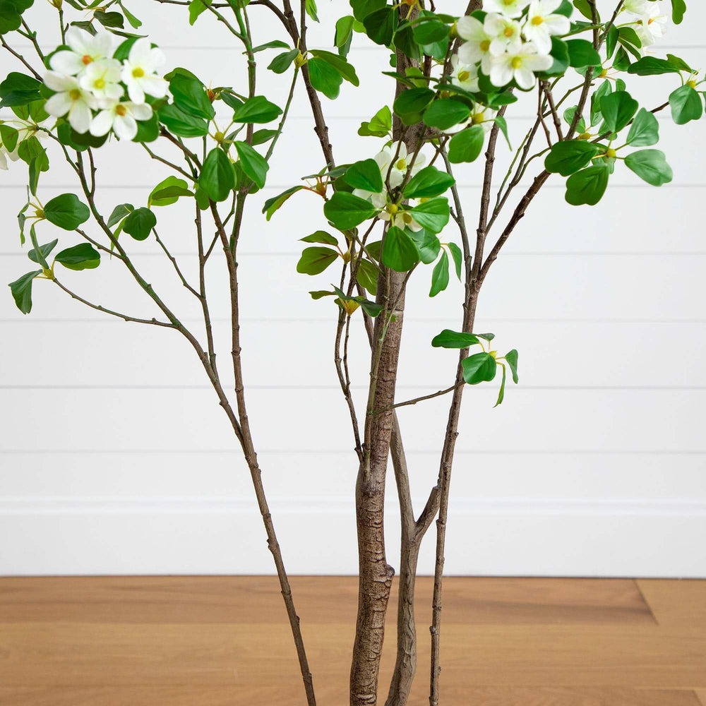 Imagine a serene, lush sanctuary in your space with the artificial dogwood tree, for a year-round touch of nature. Designed by skilled Florida horticulturists, this tree features distinct clusters of leaves, true to their natural form, complemented by vibrant flowers that add a splash of color. Made from premium materials, the tree's branches are flexible, allowing you to shape them for a customized, stylish look. At a comfortable height of 6' and housed in a nursery planter, it's perfectly suited for placing in your preferred decorative pot, enhancing any room with its lush, calming presence.