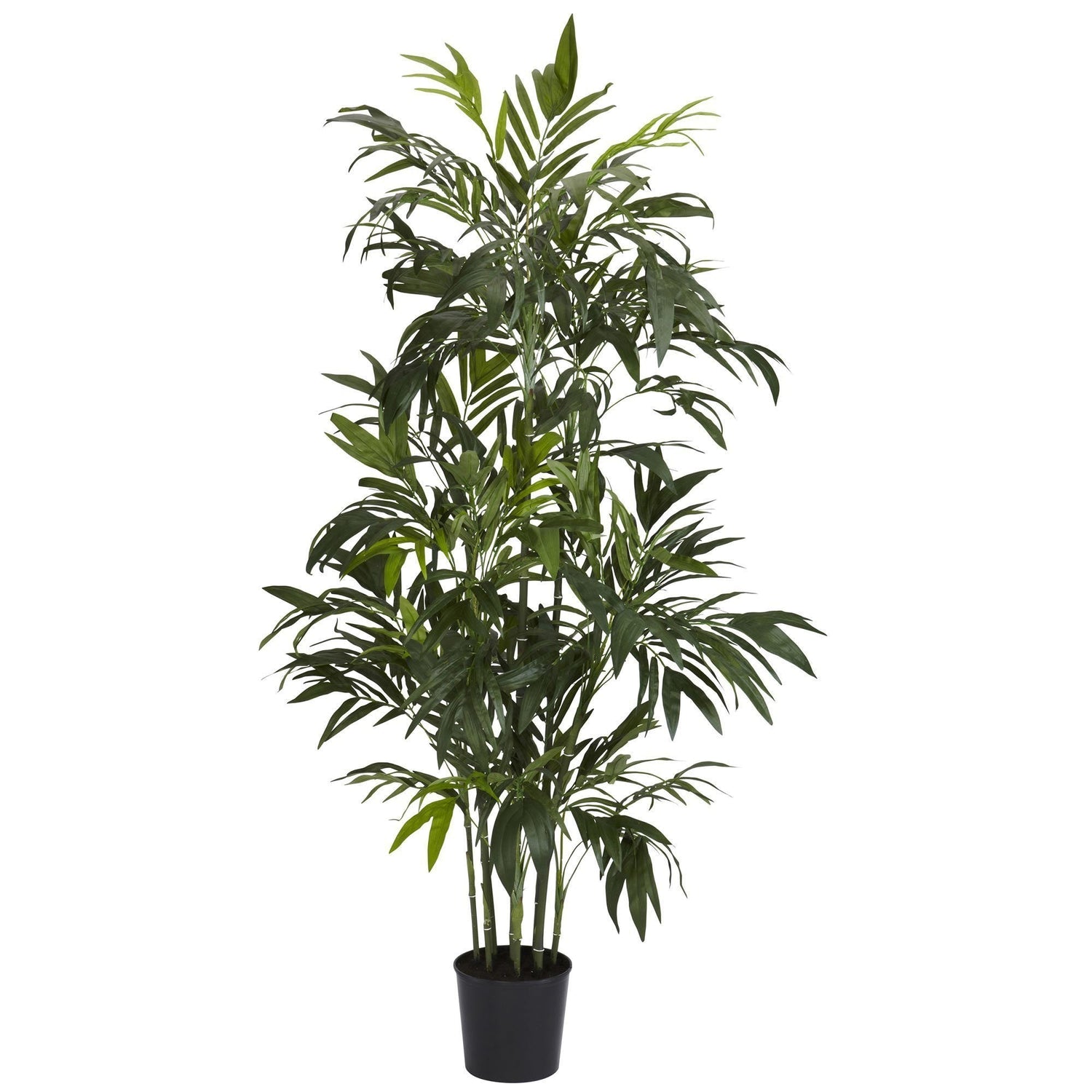 Look at all those leaves! 606 green leaves crisscrossing easy other while casting color changing shadows throughout the tree. Standing as high (or higher) than most people at six feet tall, this painstakingly designed beauty is a delight to behold. Segmented trunks in brown and white take the illusion even further. Comes with a pot and faux dirt to complete the tropical splendor.