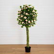 With its tightly woven tree trunk, the rose tree presents itself as a beautiful work of art. The light pink blooms are a lovely accent color to the lush green leaves of this tall artificial tree. Place it in your living or dining room for a dramatic upgrade.