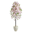 Step into the majestic spring awakening with this Cherry Blossom Artificial Tree. Feel as though you're walking through a Japanese park admiring the pink flowers and drape like twigs adorned by green leaves – stemming from a thin, brown trunk with naturally occurring details. Standing 70" from a white planter (included in height), decorate in areas that need some color. Curate in living rooms, bedrooms, offices, or closets.