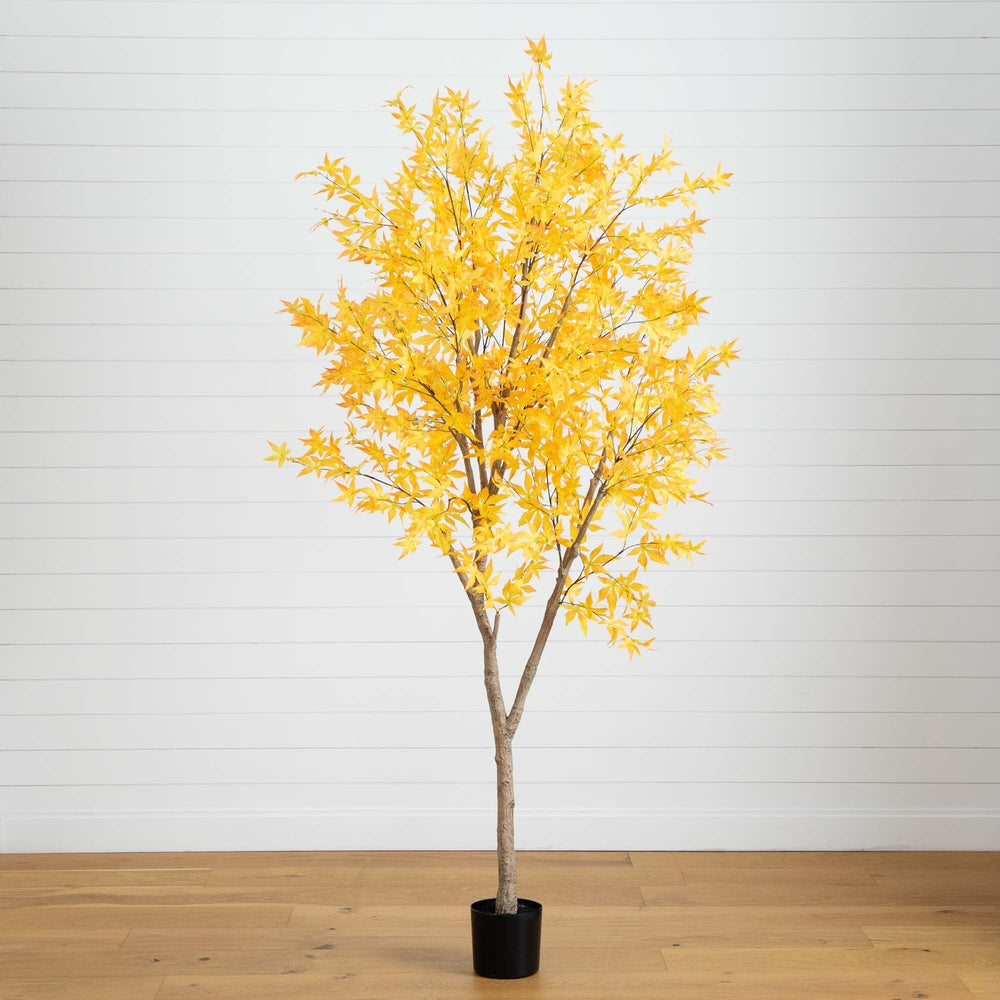 Faux in love with fall with this artificial maple tree. Inspired by Vermont's breathtaking landscape in October, it brings the leaf peeping indoors with its vibrant maple leaves. Crafted from high-quality materials to ensure it lasts, so you can create those intimate memories with family. Standing 8' from a nursery planter, this is a statement-making piece in any space. DIY and add to your favorite decorative pot. Ideal for Thanksgiving gatherings, it brings fall charm to rooms in need of a seasonal touch. Perfect for your home or office, its realistic look and classic design make it a timeless addition year after year.