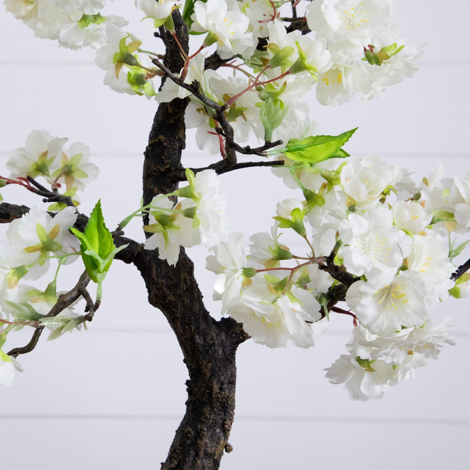 Known as the national flower of Japan, the cherry blossom tree features a strong stem with several lightly tinted white blooms on each branch. Standing at 20 inches tall, it makes a simple but dramatic centerpiece for a dining room table. Bring this beautiful artificial tree into your home to have spring indoors all year around.