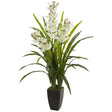 This artificial cymbidium orchid plant features an array of white blooms surrounded by lush green leaves. At 45 inches in height, it's a great addition to a well-decorated end table in your living room or hallway. Pair it with other faux flowers or glazed vases for an elegant arrangement.