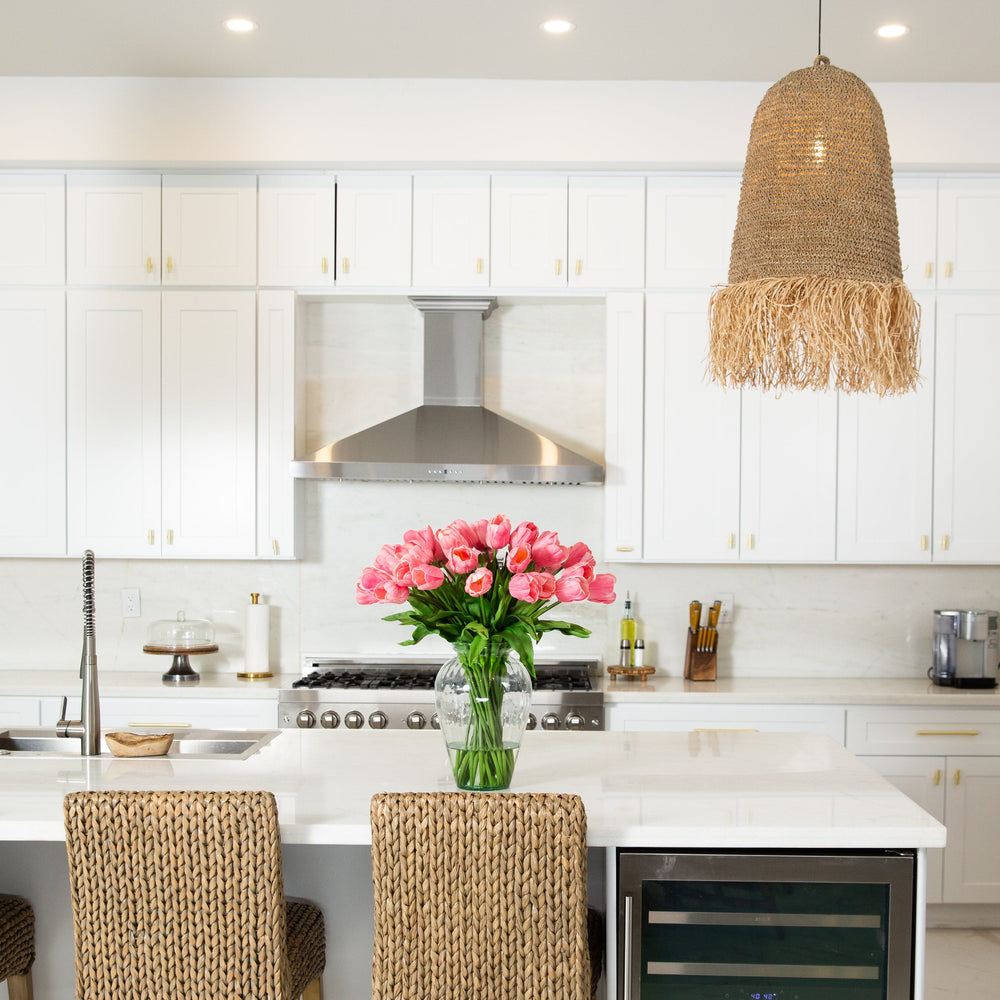 When understated elegance is what you're after, our artificial tulip arrangement from the new Signature Collection strikes the perfect chord. Representing the pinnacle of design and craftsmanship, each petal, stem, and leaf has been intricately crafted by horticulturists experienced in the live plant realm. Admire the perpetual bloom, capturing nature’s brilliance without the upkeep. Also, you can bend the stems for a unique, one-of-a-kind look. Set at a graceful 24" within a glass vase featuring a special, proprietary fade-resistant water, Liquid Illusions, it’s the timeless touch every space needs. Perfect for circular and rectangular tables.