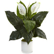 The spathifyllum's big, beautiful white flowers rise up from the thick, bountiful leaves. The elegant arrangement was made with care from the finest materials, which may explain the realistic look. The included white glass planter helps the spathifullum look lovely in just about any space, including a bathroom or an office reception area.
