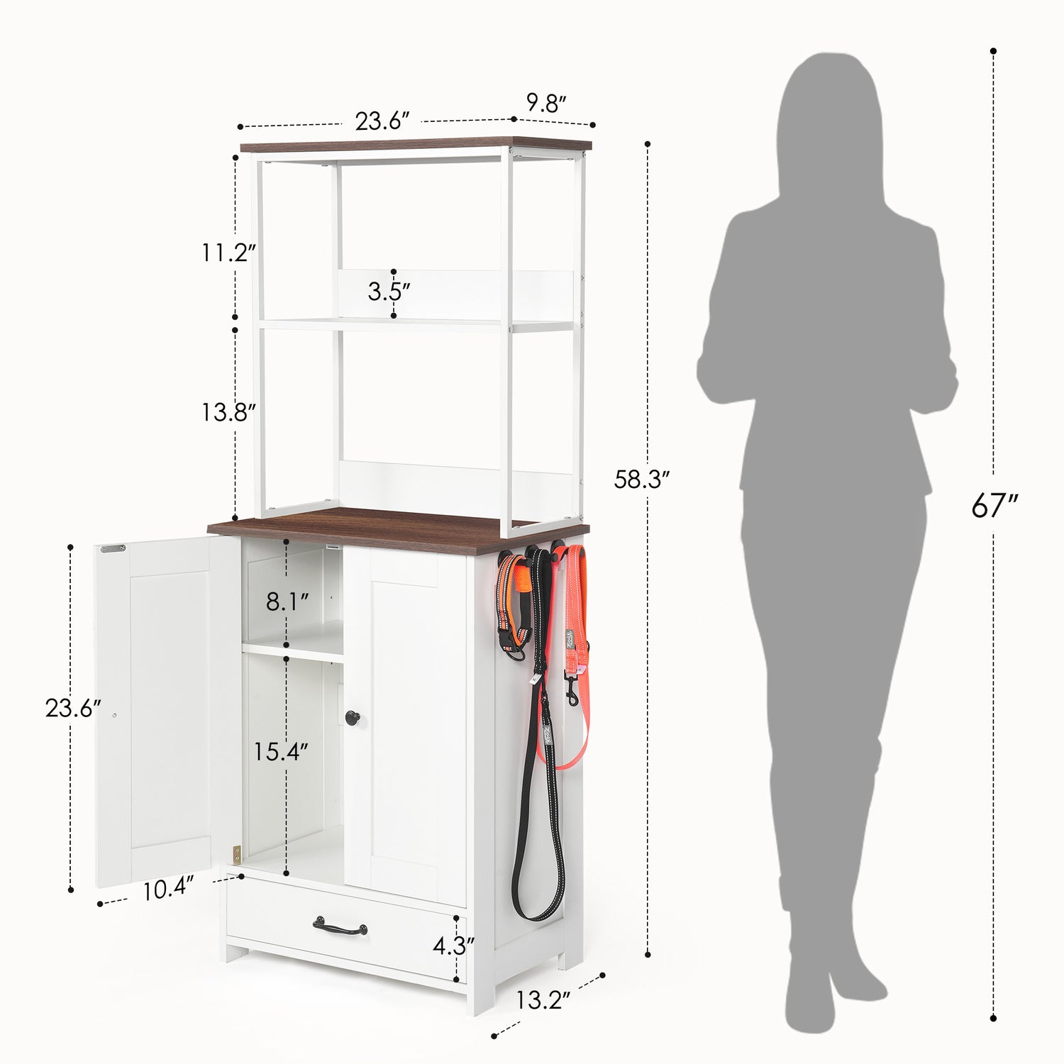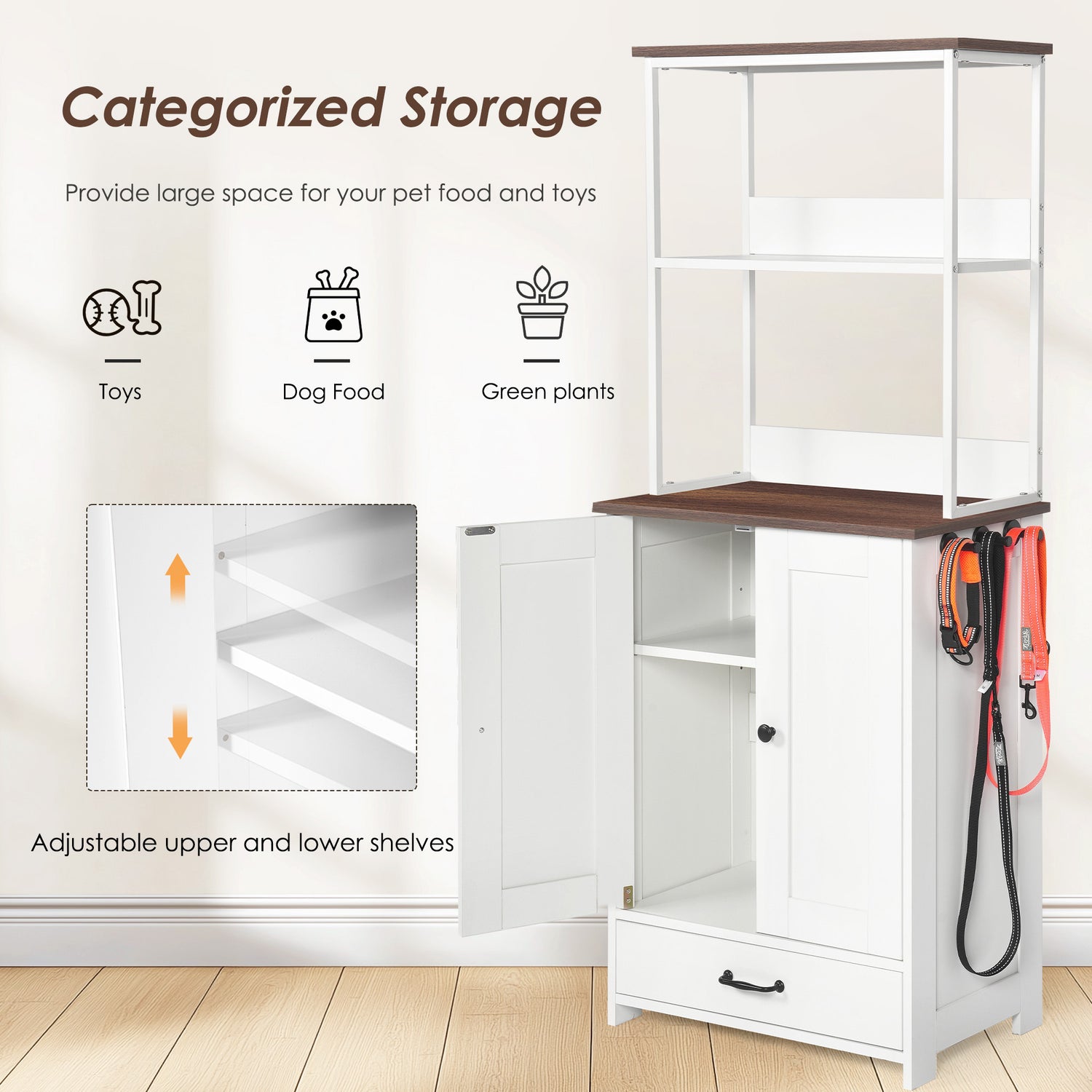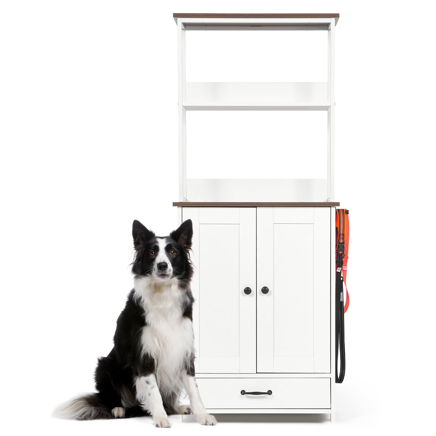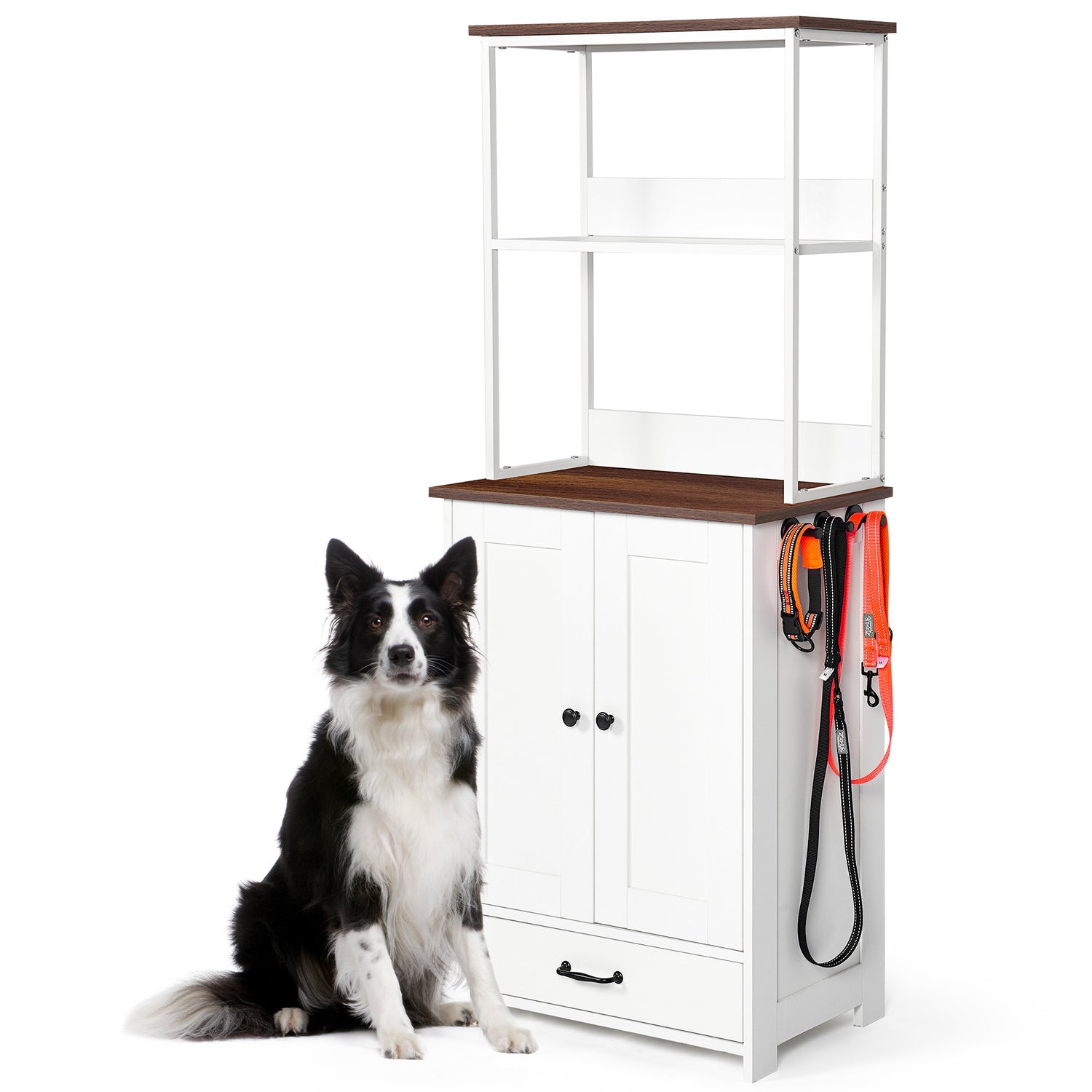 - Powerful storage: Compared to other dog feeding bowls, our dog feeding station has three hooks on the side for hanging pet collars and dog leather straps. Not only does the inside of the cabinet have a conditional height of the floor, the top of the cabinet with shelves, this dog feeding station can store more pet supplies, pet food, pet toys. With this dog food locker, you don't have to worry about clutter anymore.