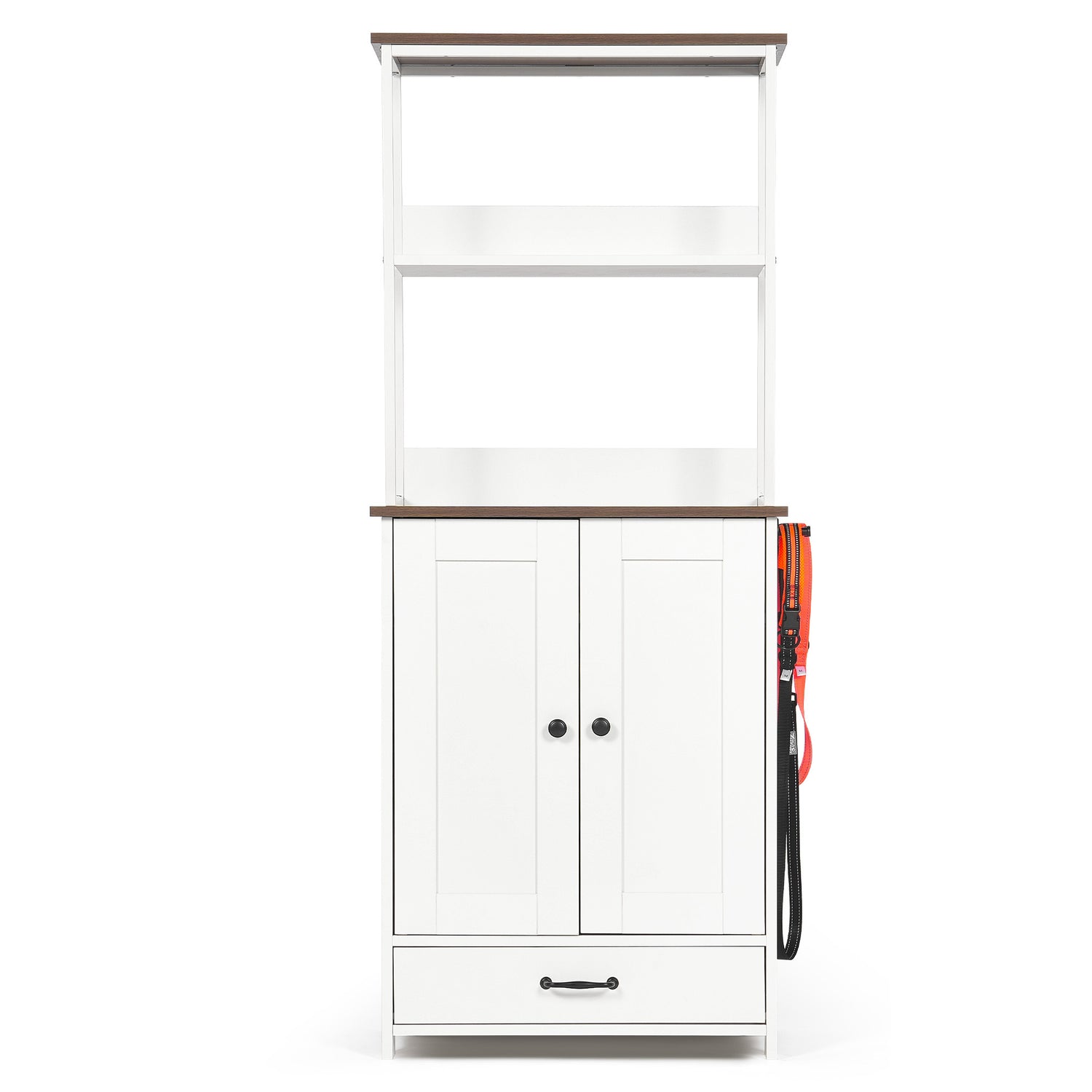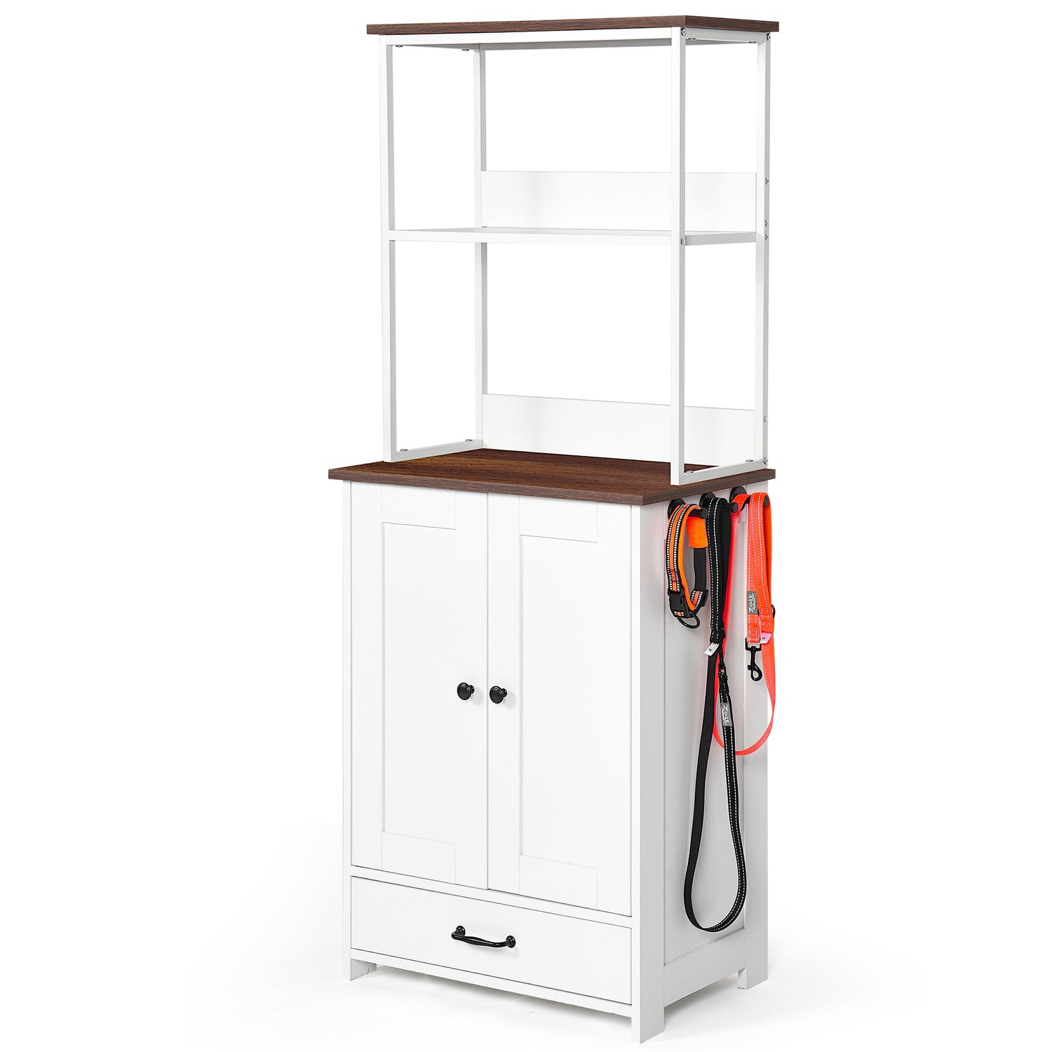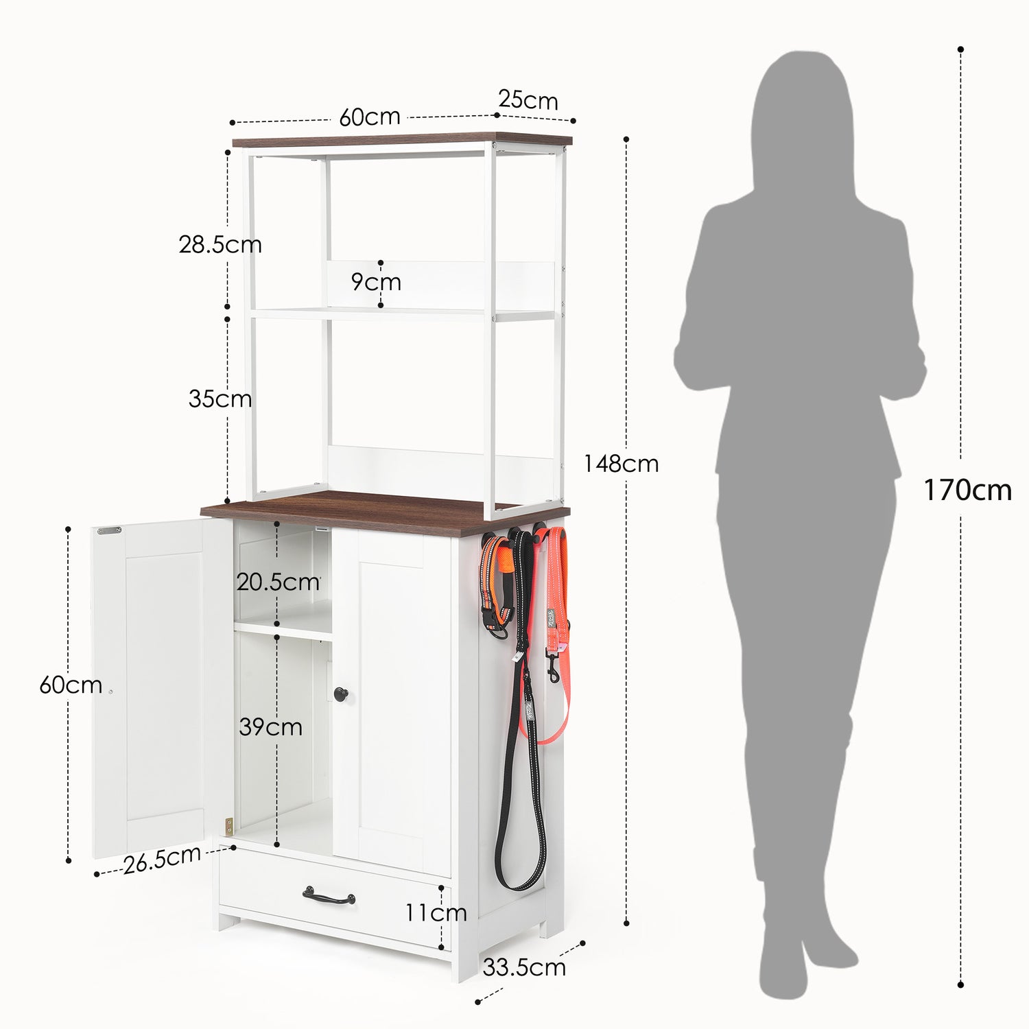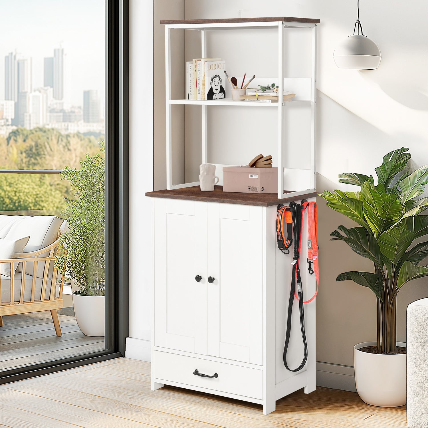 - Powerful storage: Compared to other dog feeding bowls, our dog feeding station has three hooks on the side for hanging pet collars and dog leather straps. Not only does the inside of the cabinet have a conditional height of the floor, the top of the cabinet with shelves, this dog feeding station can store more pet supplies, pet food, pet toys. With this dog food locker, you don't have to worry about clutter anymore.