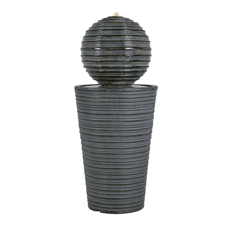 20x20x19.5' Heavy Cement Round Black Ribbed Outdoor Water Fountain with Light (Color Change)