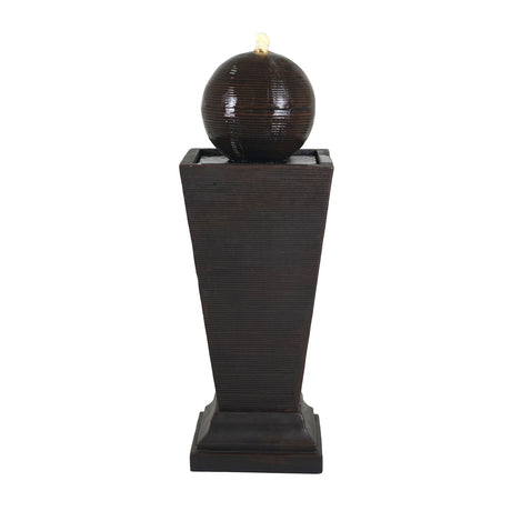 35.5" Tall Column Fountain With LED Lights, Dark Brown