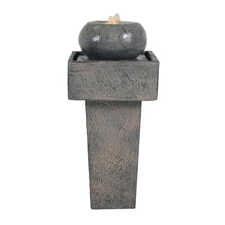 Minimalist Column Fountain With LED Lighting, Outdoor Decor For Patio, Porch And Garden - Gray