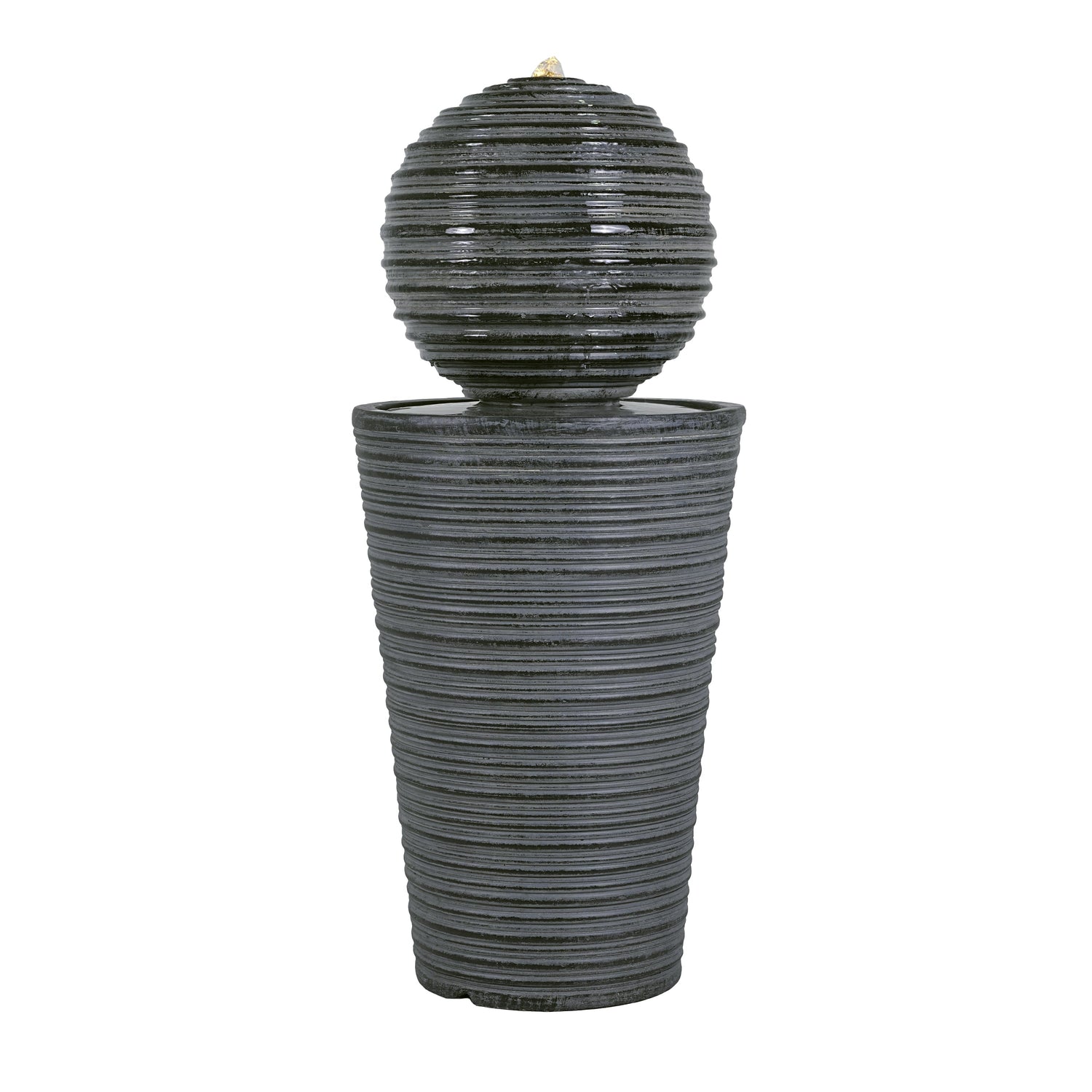 This tall striped concrete column fountain enhances modern outdoor spaces with its striking design and integrated LED lighting. Perfect for patios or gardens, it offers both visual appeal and ambient sound.