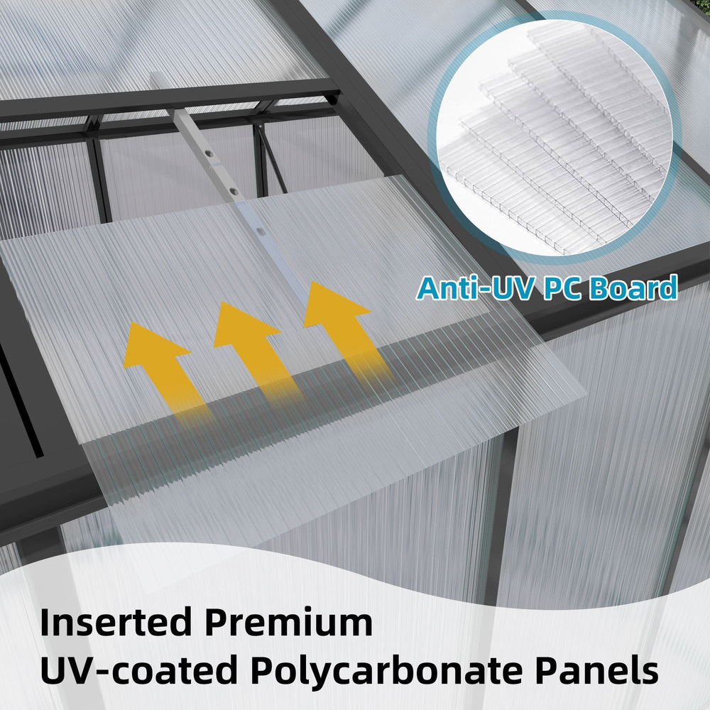 • Heavy-duty 4mm polycarbonate panels providing UV protection with 70% light transmission for healthy plant growth
