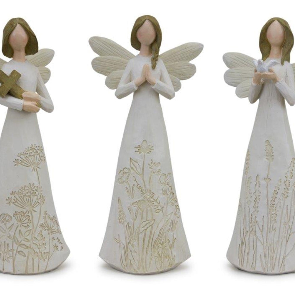 Beige Floral Etched Angel Figurine (Set of 3)