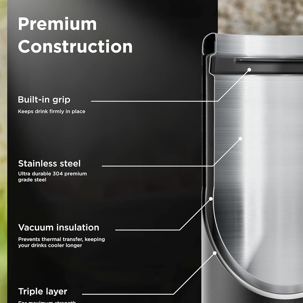 • Premium stainless steel with triple layer vacuum insulation keep drinks cool or hot for longer, without condensation on your hands or table.