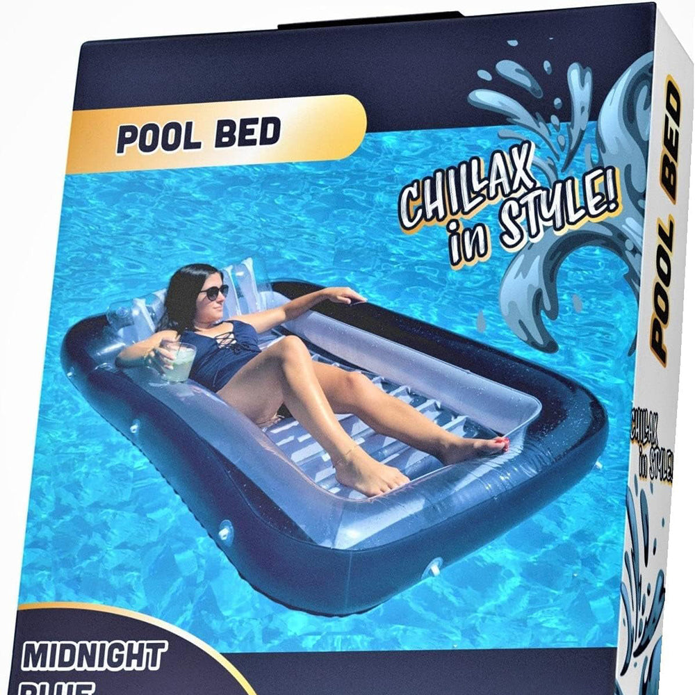 XL Floating Pool Bed, Inflatable Water Lounger Raft Float for Swimming/Tanning 70"x49" Navy Blue