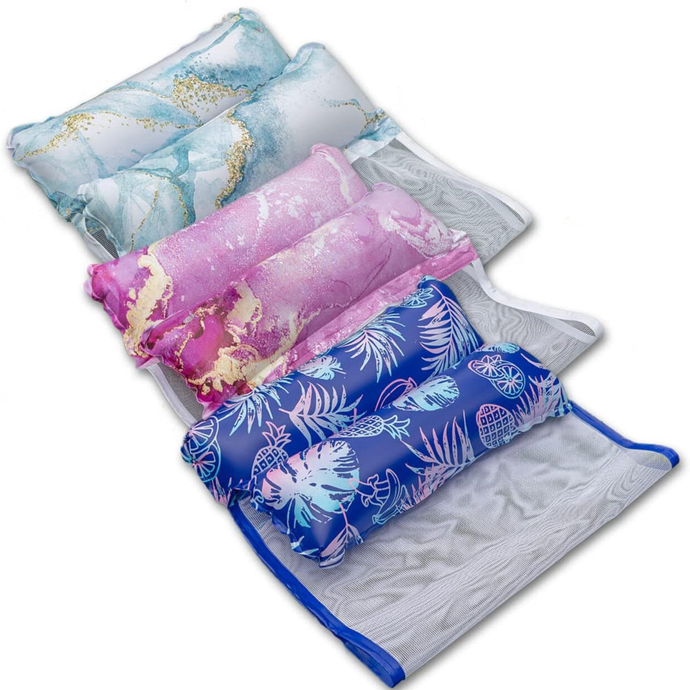 [3 Pack] Premium Pool Floats Inflatable Water Loungers - Swimming Hammock for Adults with Mesh Bottom Seat (Bulk Pack)
