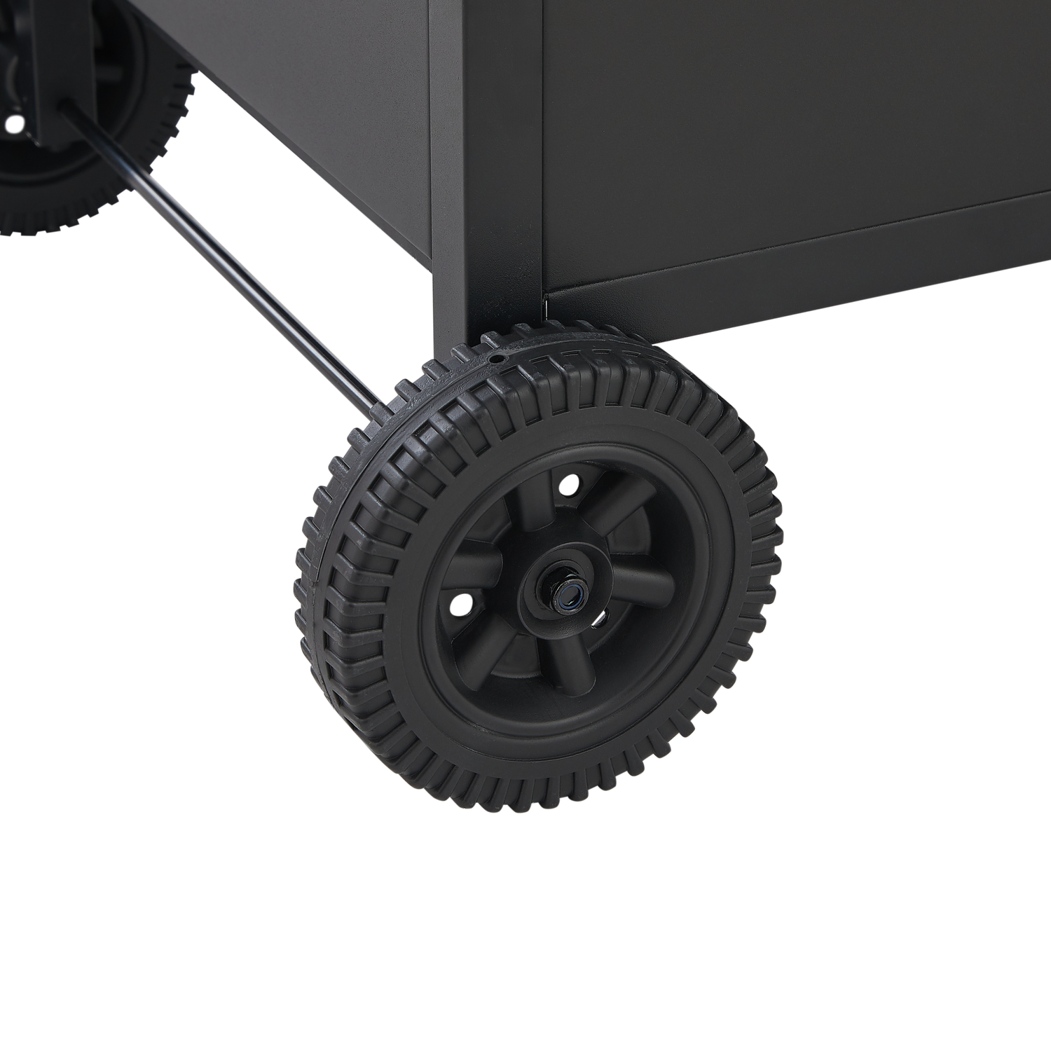 • Equipped with 4 wheels (2 of which are lockable for added stability), this grill can be easily moved across grass or patios. Lock the wheels for steady cooking, and unlock them for flexible repositioning. It is suitable for various outdoor spaces—backyards, patios, balconies, and more. As an all‑year‑round cooking solution, it allows grilling, searing, and other cooking styles, making it an ideal choice for family gatherings.