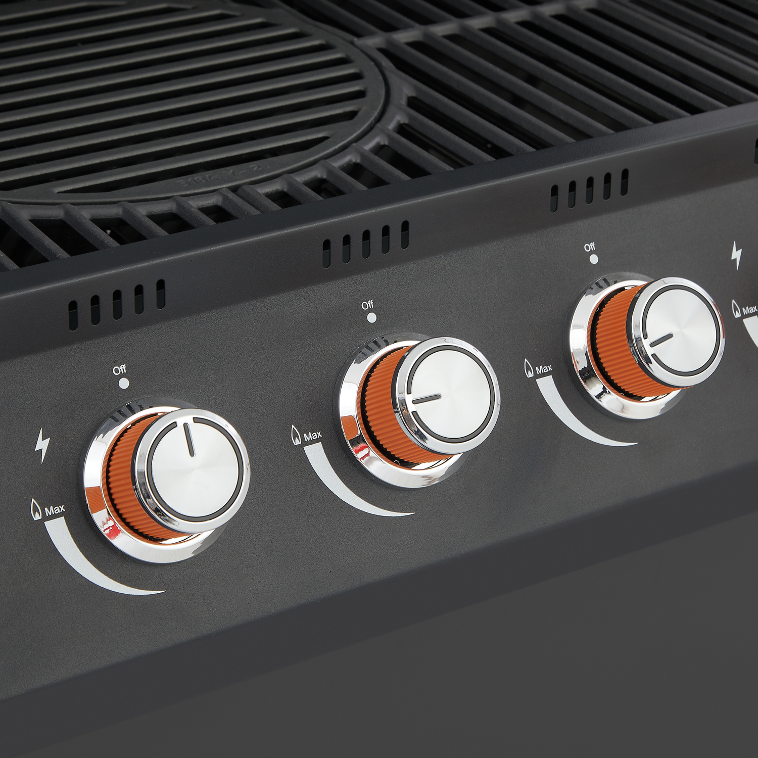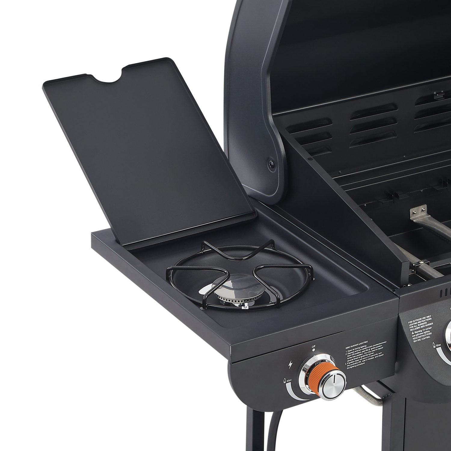• Convenient Side Burner: The side burner, complete with a lid and capable of producing up to 12,000 BTU, is perfect for whipping up side dishes, heating sauces, or preparing small meals while you’re grilling.