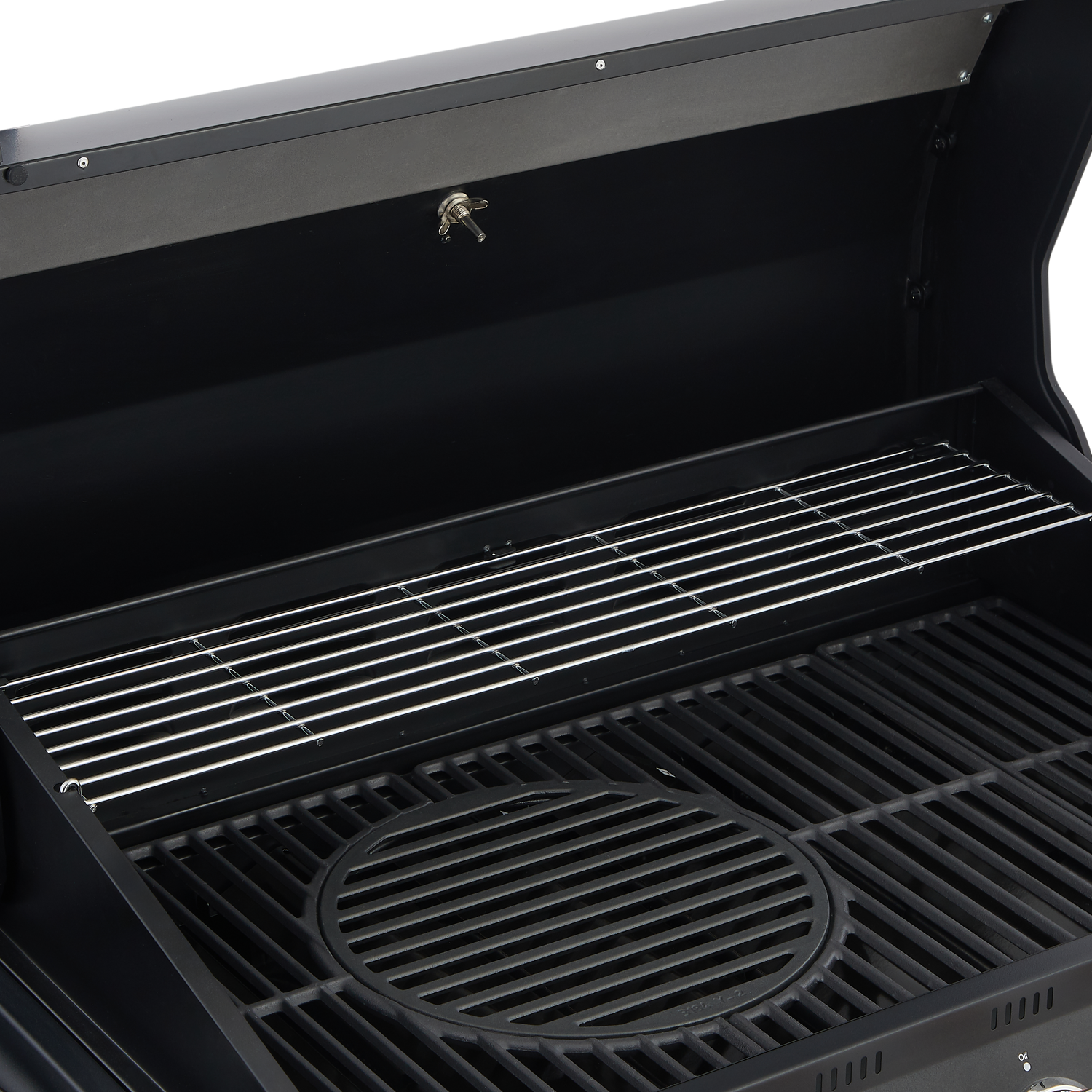 • This gas grill features a cast iron cooking grate, delivering excellent heat conduction performance that helps your steak develop better grill marks. It offers a total grilling area of 650 square inches, which includes a 175‑square‑inch warming area. The warming rack keeps food warm so it can be served at any time—even after cooking is finished.