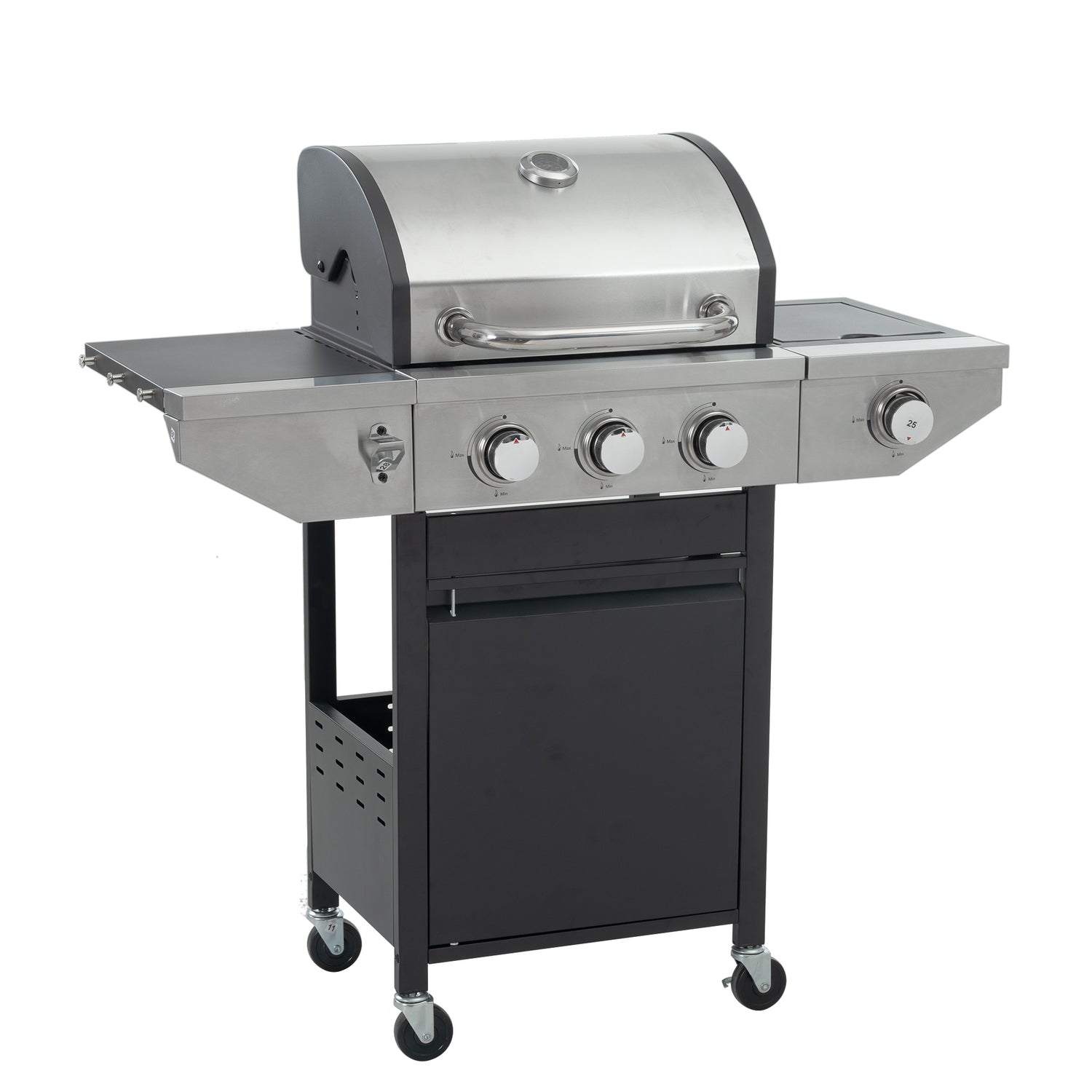 - The single side burner is an appropriate choice to prepare side dishes, each head can be independently fired, reliable side plate strength, stainless steel high temperature cover, side black powder, galvanized lining, cover with thermometer (round), stainless steel control panel, black body spray high temperature resistance 400, Fast & Even Heat, reliable enough to fire up burners immediately. with four wheels (two directional wheels, two steering wheels)
