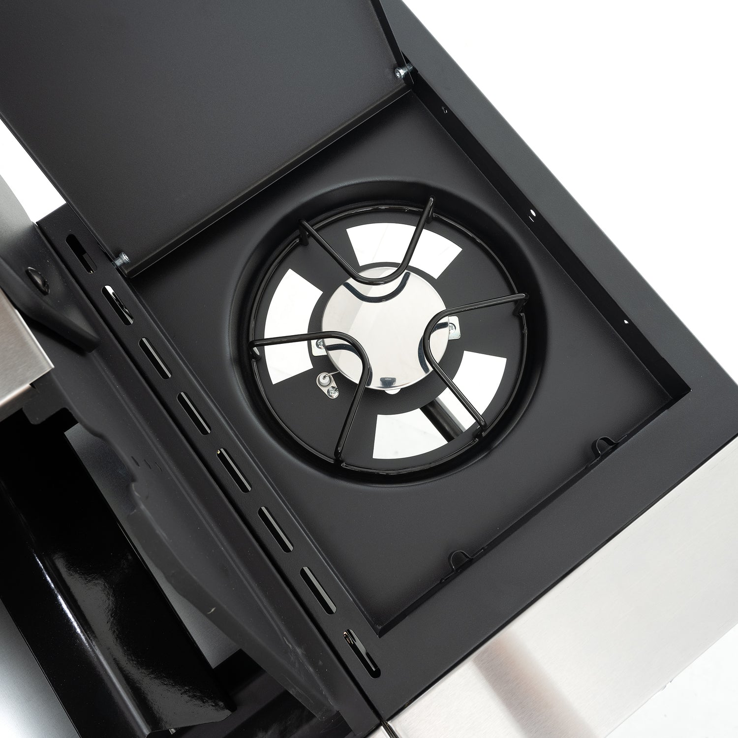 - Burners for Different Purposes: With the capacity of offering high power, the sear burner produces intense high heat for professional style searing. The single side burner is an appropriate choice to prepare side dishes.