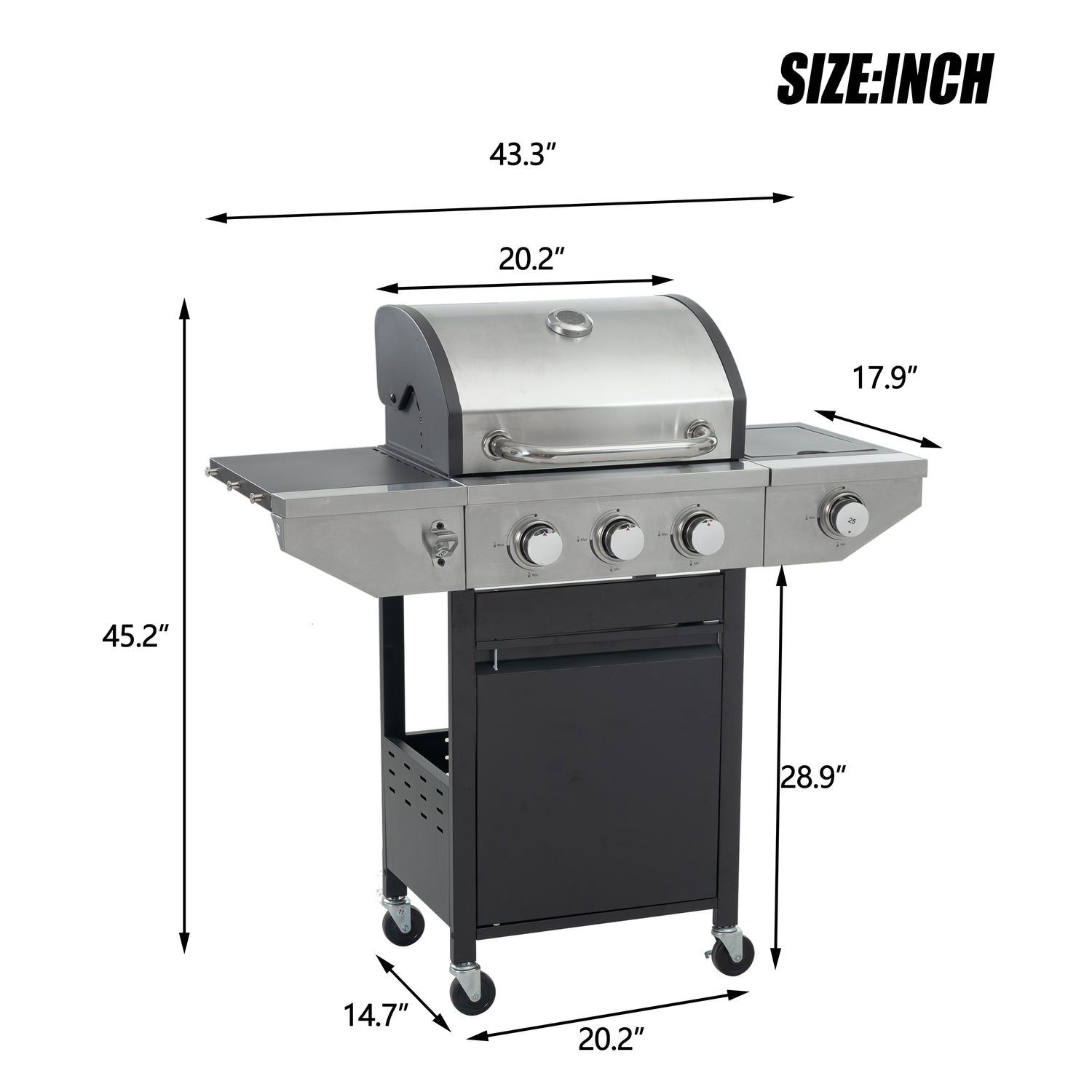 - size:48.42''*21.85''*45.28'' BBQ GASGRILL/Gas oven. Material :Stainless Steel 430 thickness 0.8mm.Total:37,000 BTU