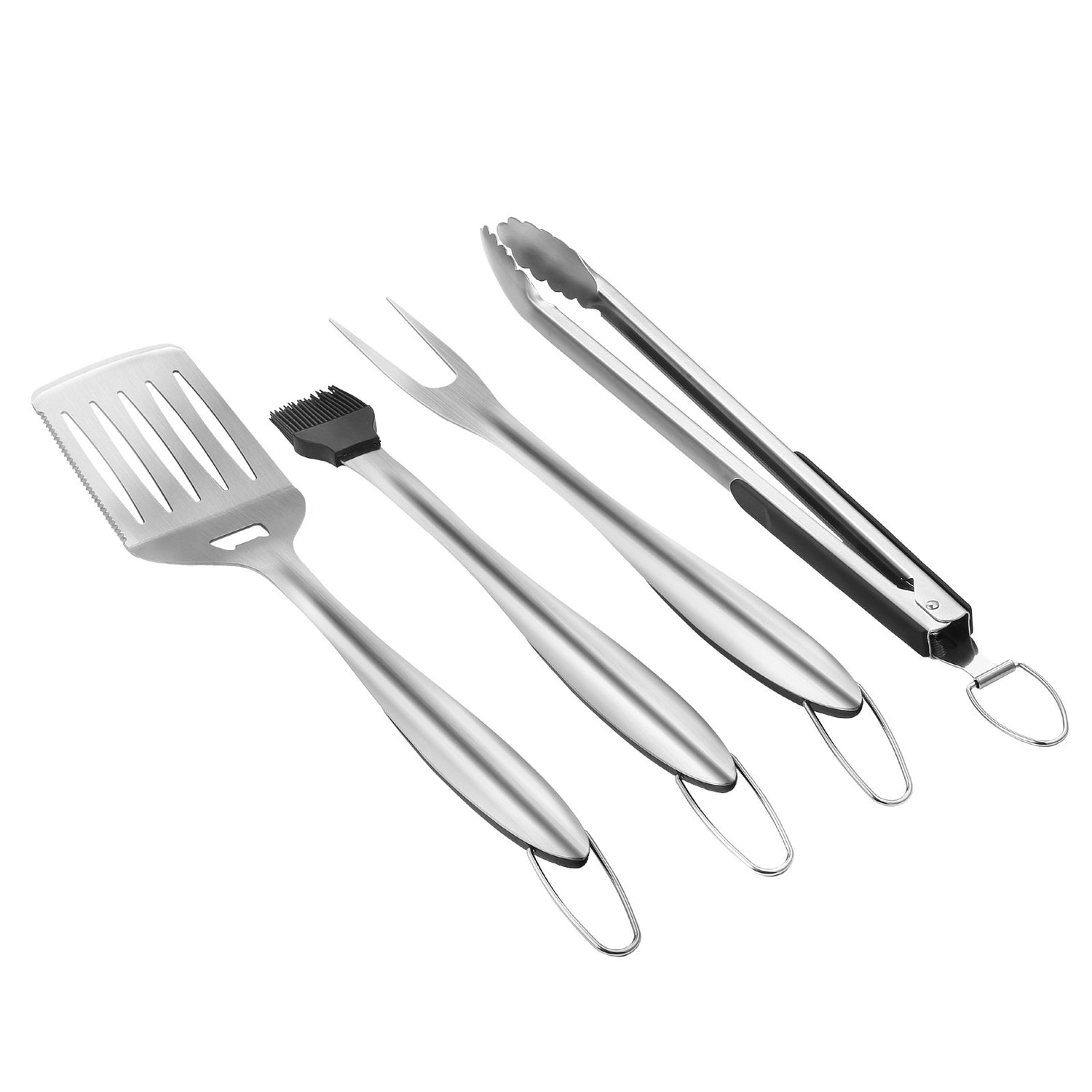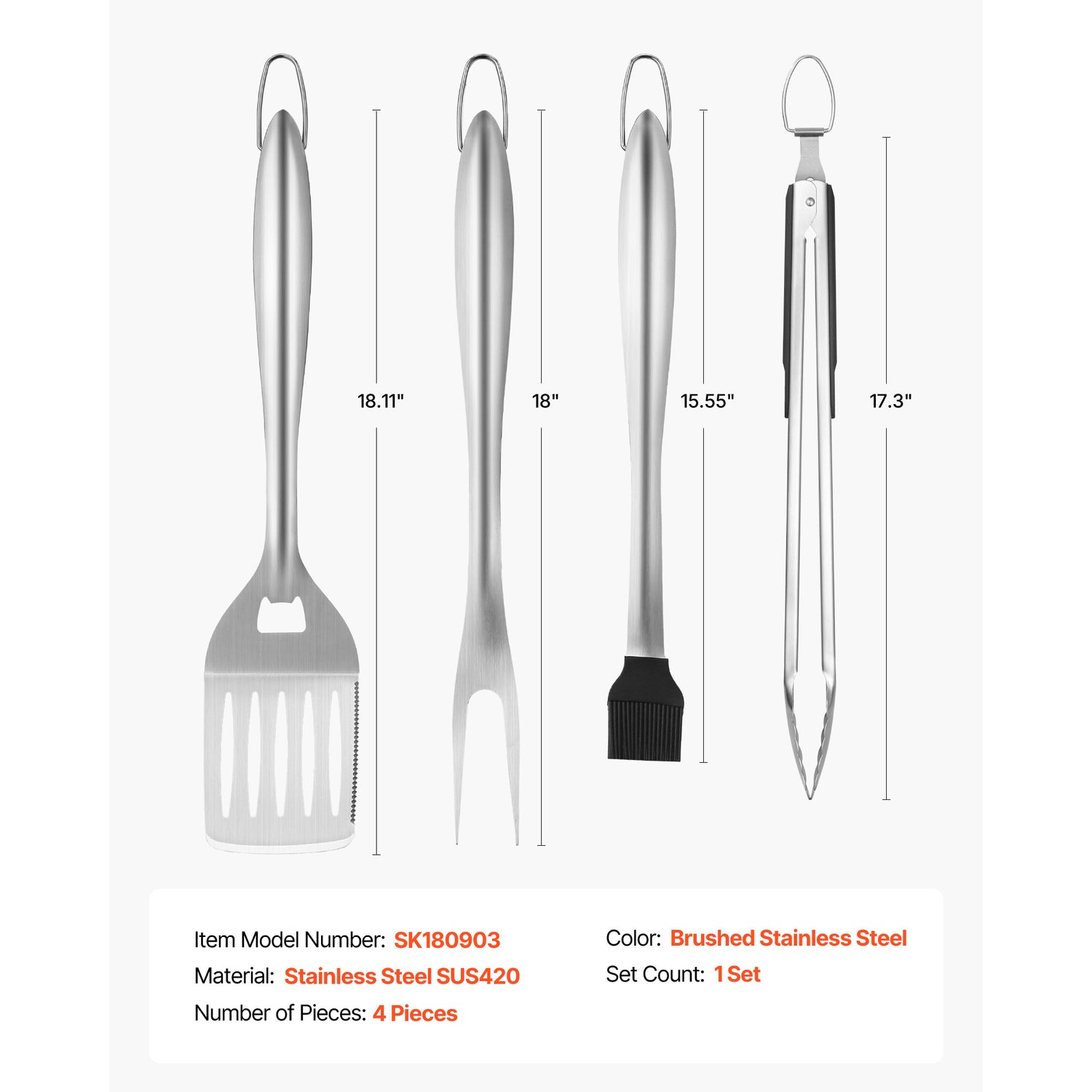 • All-in-One Set: Ideal 4-piece grilling tool set including spatula, fork, tong, and brush. Covers cutting, flipping, grabbing, and basting functions to meet all your grilling needs, helping you easily master delicious cooking
