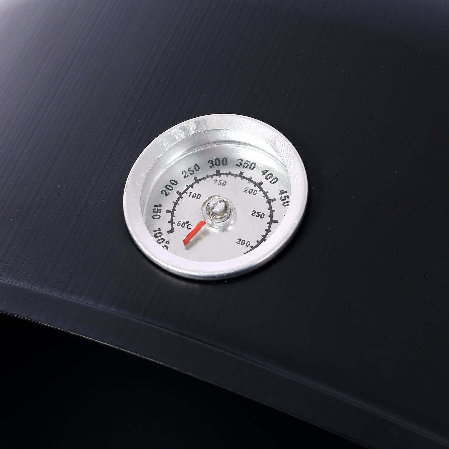 - Enhanced Temperature Control – Built-in thermometer with detailed scale and adjustable air supply on the lid for precise heat management. Porcelain-enameled water and charcoal pans for consistent performance, with heat-resistant Bakelite handles for easy handling.