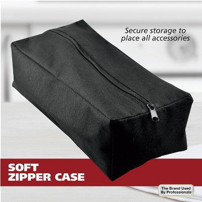 The kit also features a large nylon barber's cape to keep your clothes free from cut hairs, ensuring a clean and comfortable haircut. Use the premium styling comb to straighten your hair and remove excess cut hairs during your trim. The soft-bristled neck duster efficiently clears away any lingering hair from your head, neck, ears, and cape.