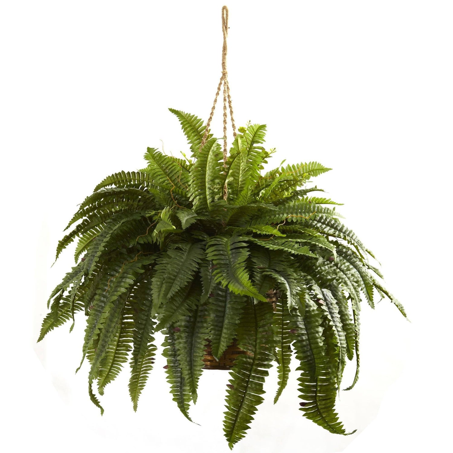 When you need a hanging plant that reflects style and elegance, this Double Giant Boston Fern is an excellent piece to add to your collection. This handsome specimen comes in a lush green color that is sure to go with any décor, and the delicate leaves of the fronds make this a site to behold. Never needing water, this wonderful piece is sure to brighten any home or office. Because of the handmade nature of the basket, the texture, design or color may vary, but this is expected and a reminder of the quality.