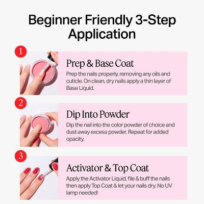 Highly pigmented ultra fine colored powder that gives you harder, bright & vivid nails. You can apply to your natural nails or on tips for up to 6 weeks of no chip wear. Our custom powder formulas feature the ultimate fine texture of powder and pigments for even and smooth application. Glitter formulas come packed with glitter for an ultimate dazzling effect.
