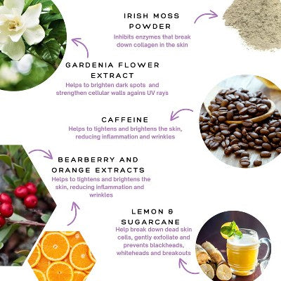 Rich in antioxidants, caffeine, and ferulic acid to help dull skin, improve overall brightness, and strengthen the cellular walls against UV rays, helping to prevent premature aging and maintaining a healthy complexion.