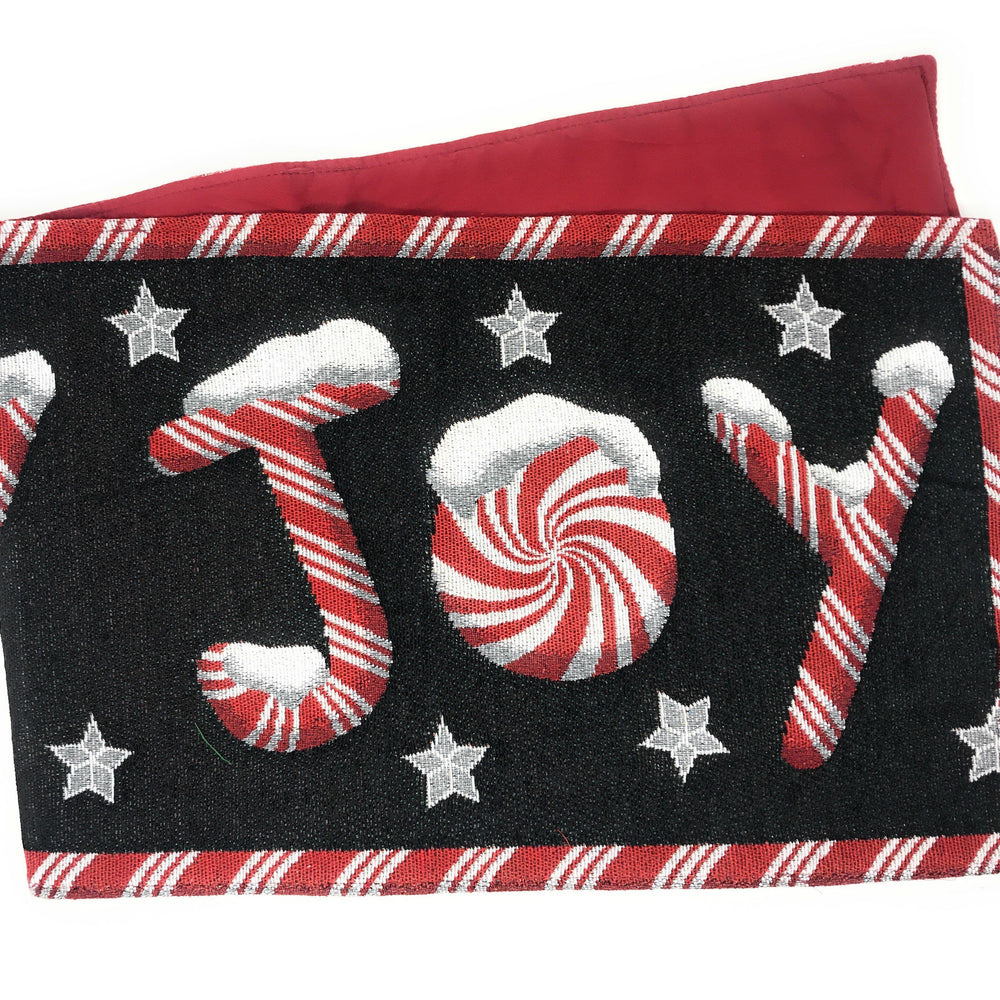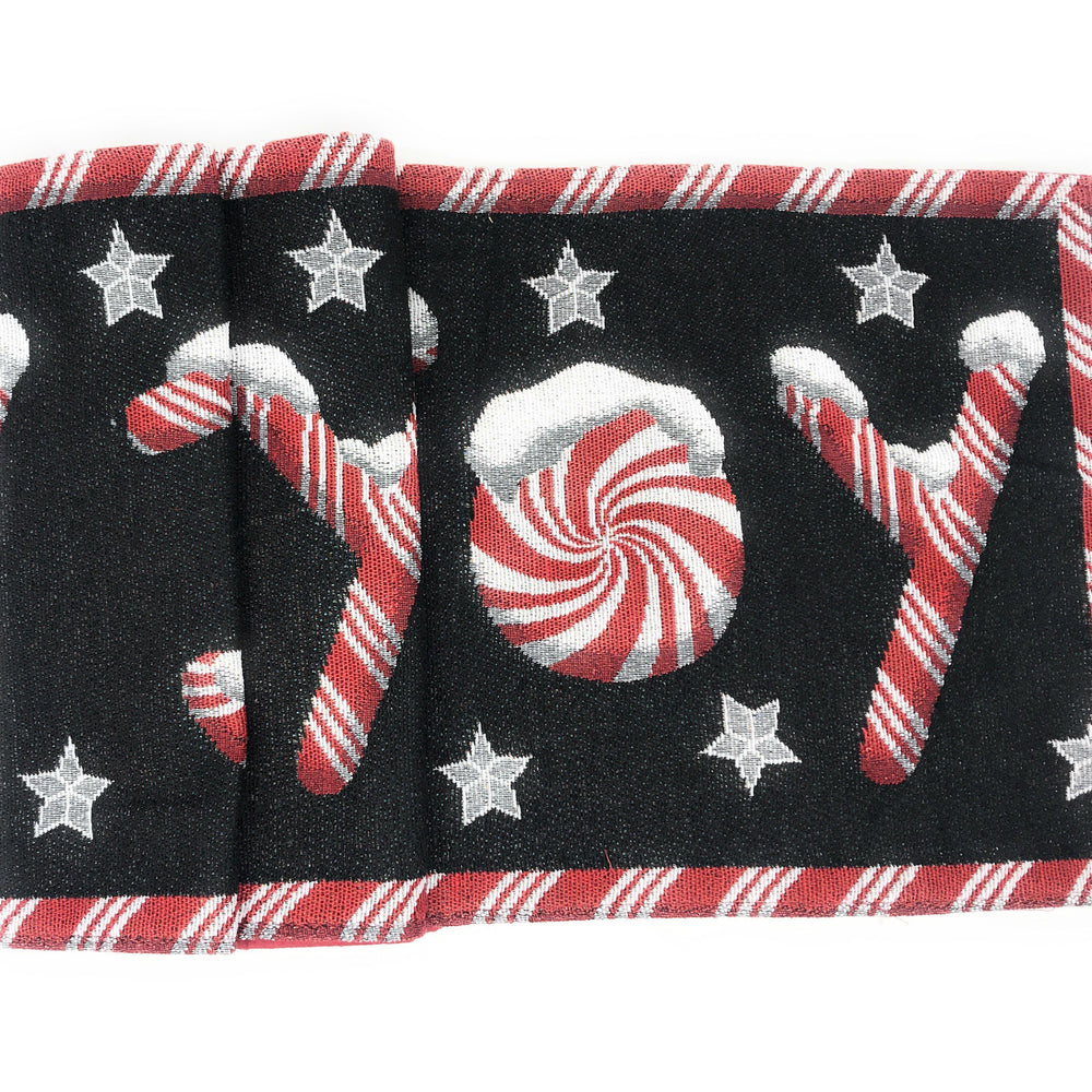 Peppermint Joy Red Black Holiday Tapestry Dining Table Runner (12904)