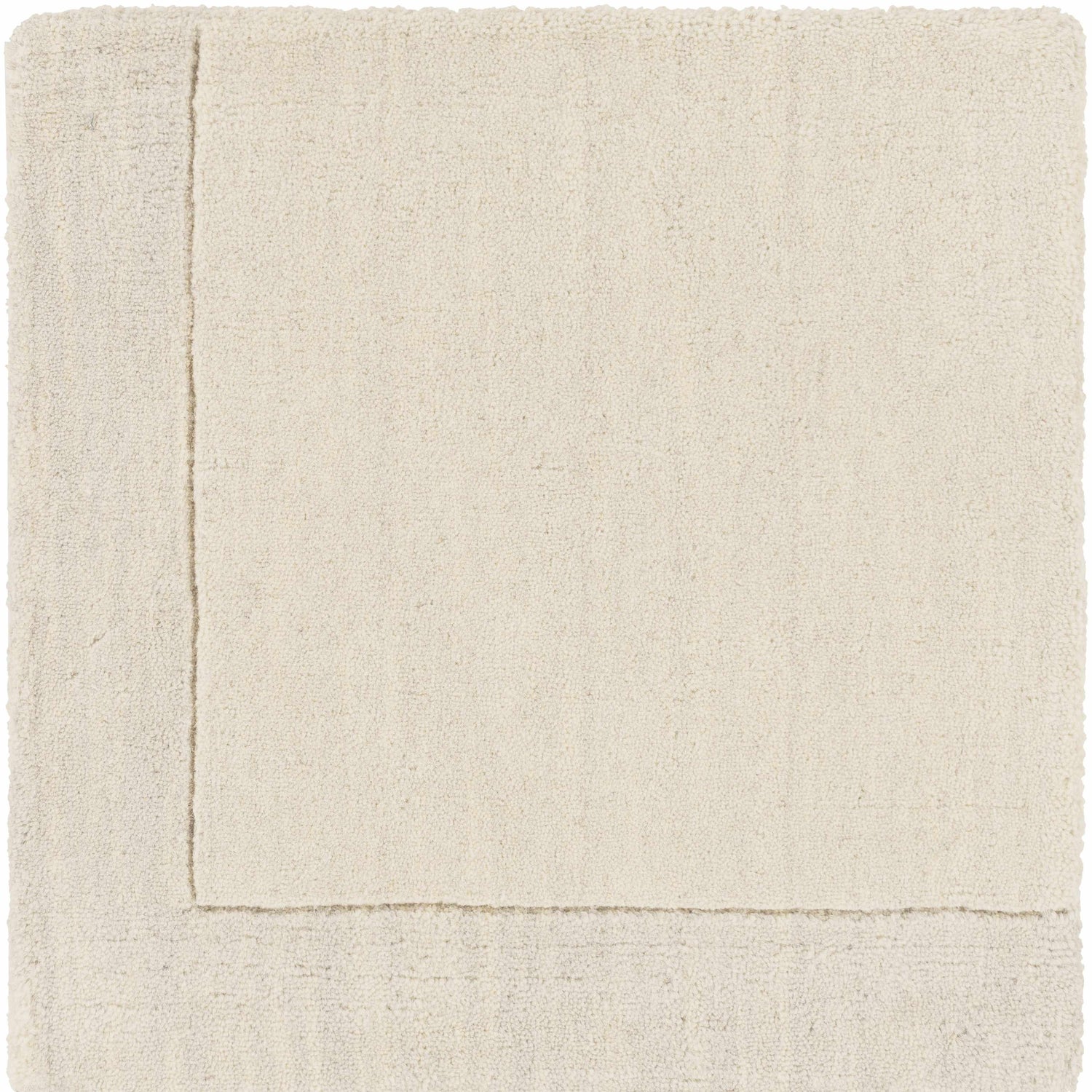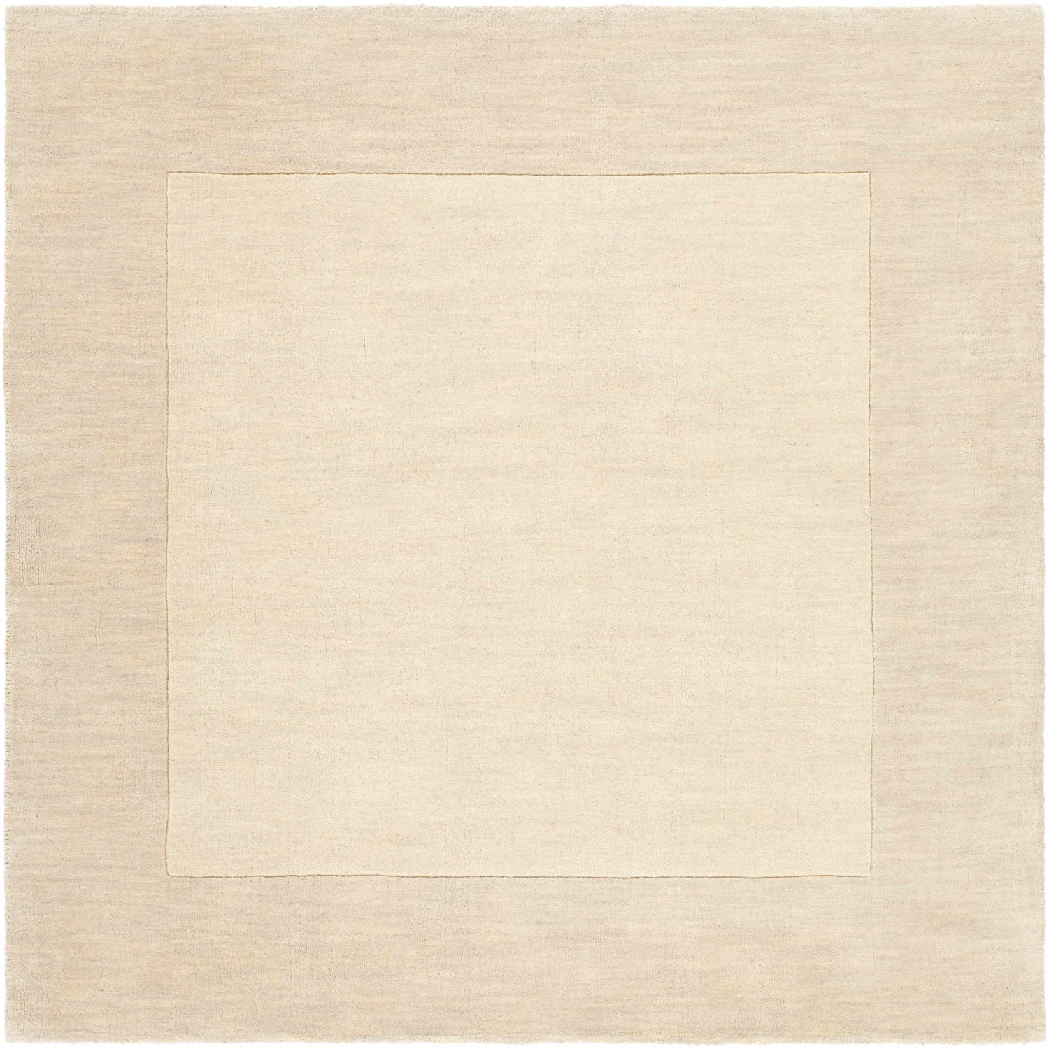 Bordered Solid Beige Cream Wool Rug