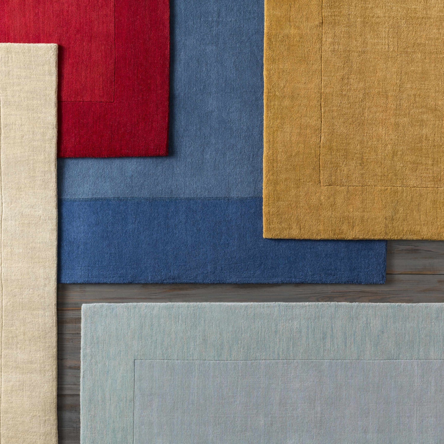 Bordered Solid Red Wool Rug