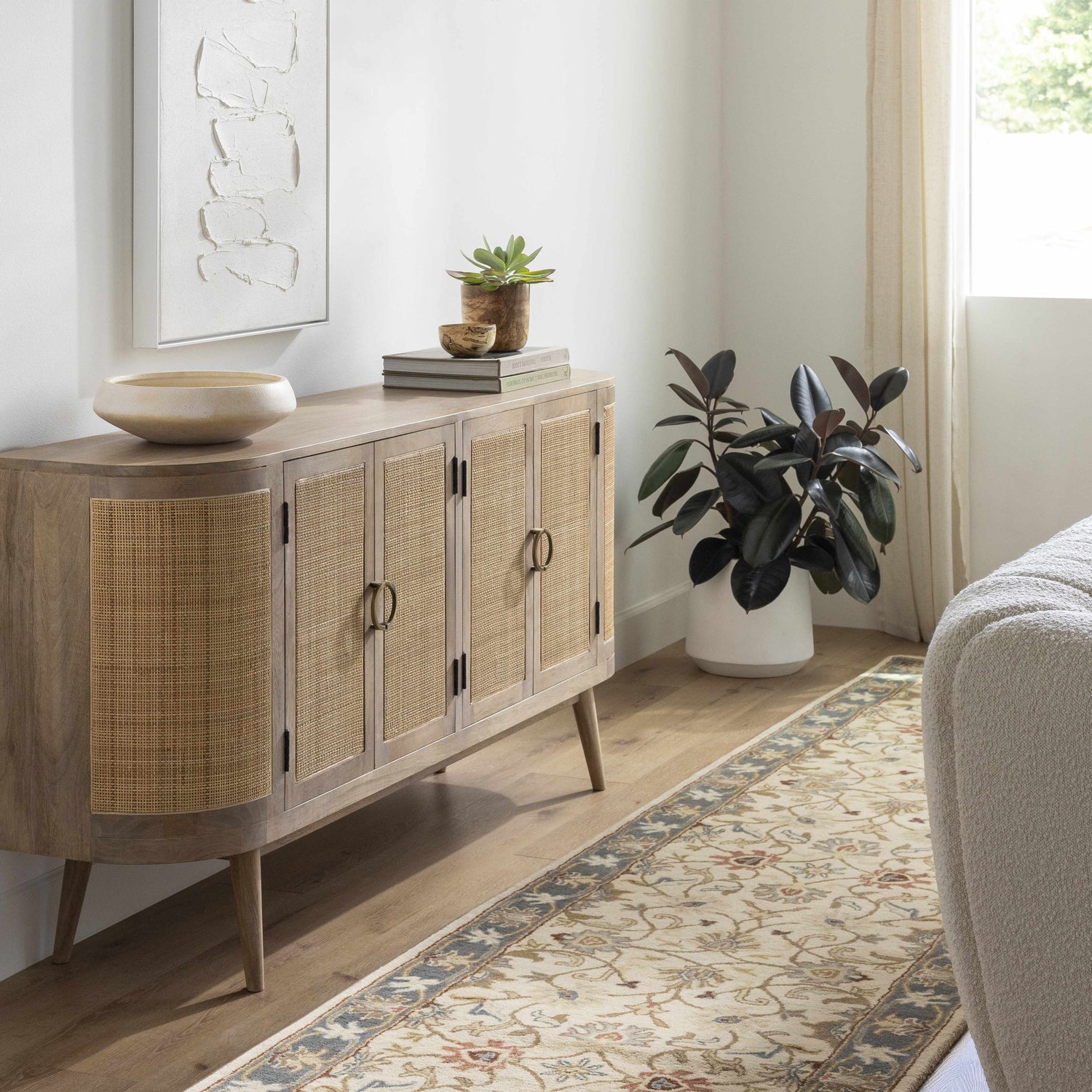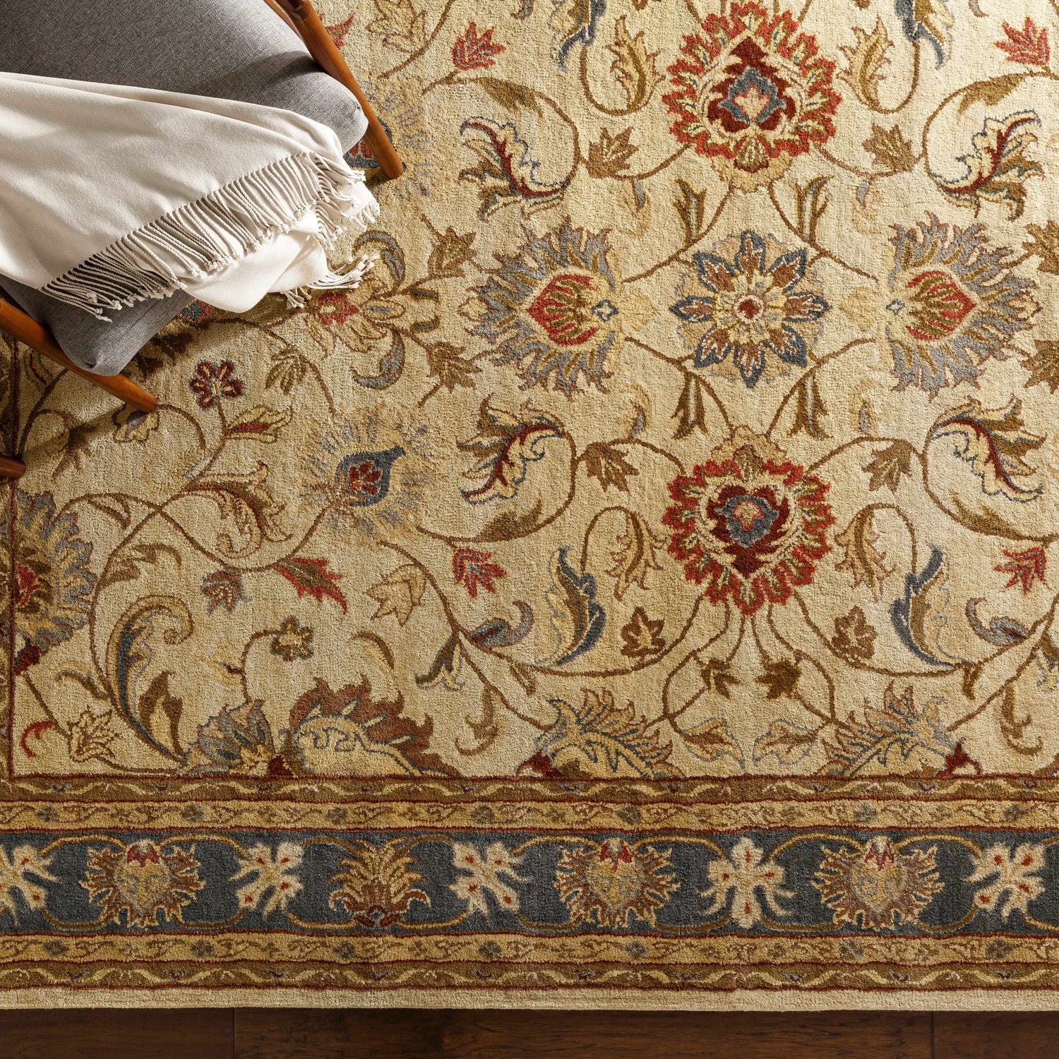 About: Experience the refined beauty and inviting texture of this piece. This piece is crafted from Wool using hand tufted construction available in Natural with floral pattern, traditional style Made in India.