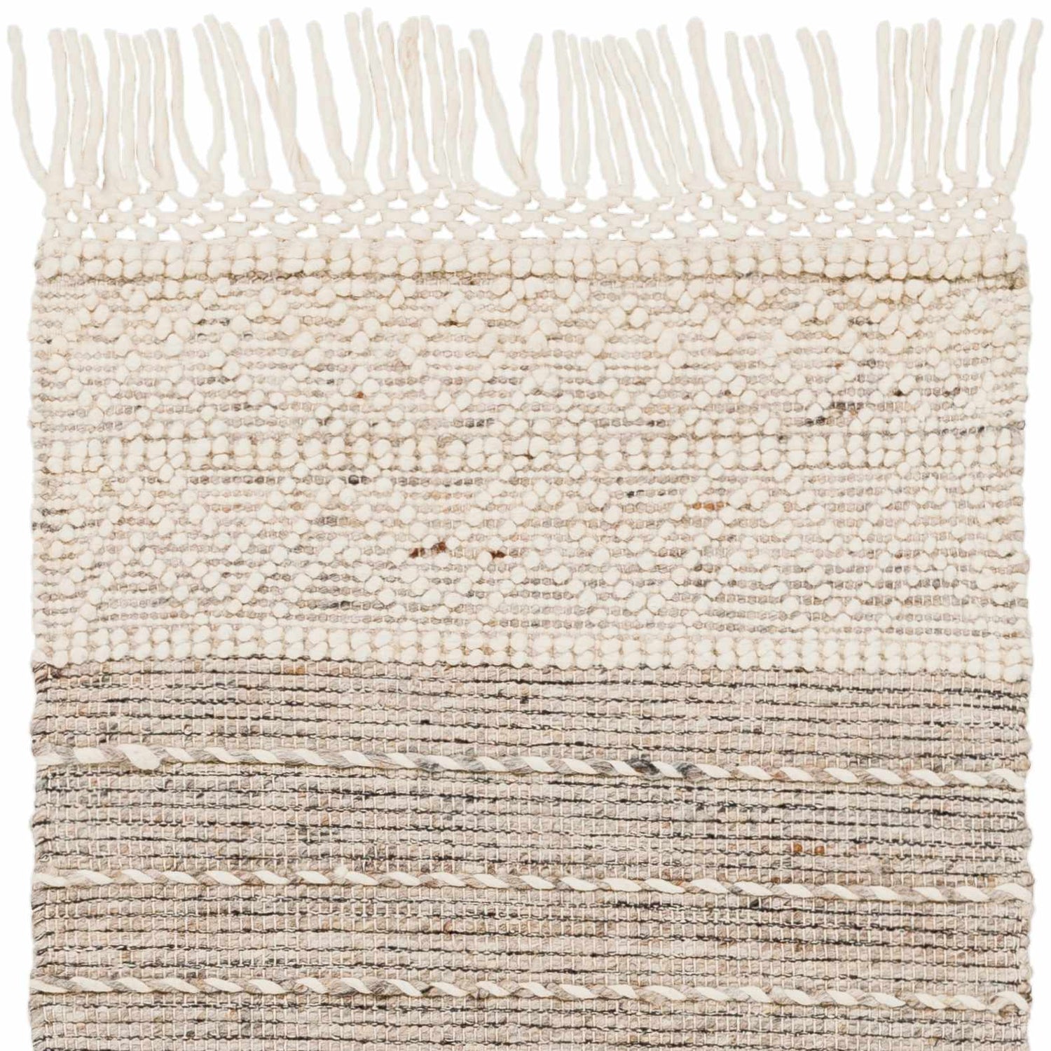 Cream Veruela Wool Blend Braided Tassel Area Rug - Clearance