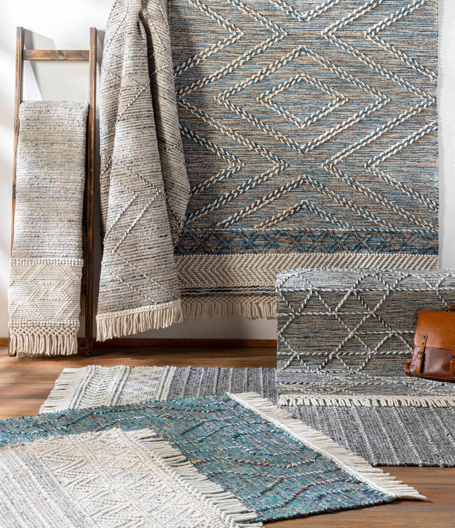 Dark Blue Takaungu Wool Blend Braided Tassel Area Rug - Clearance