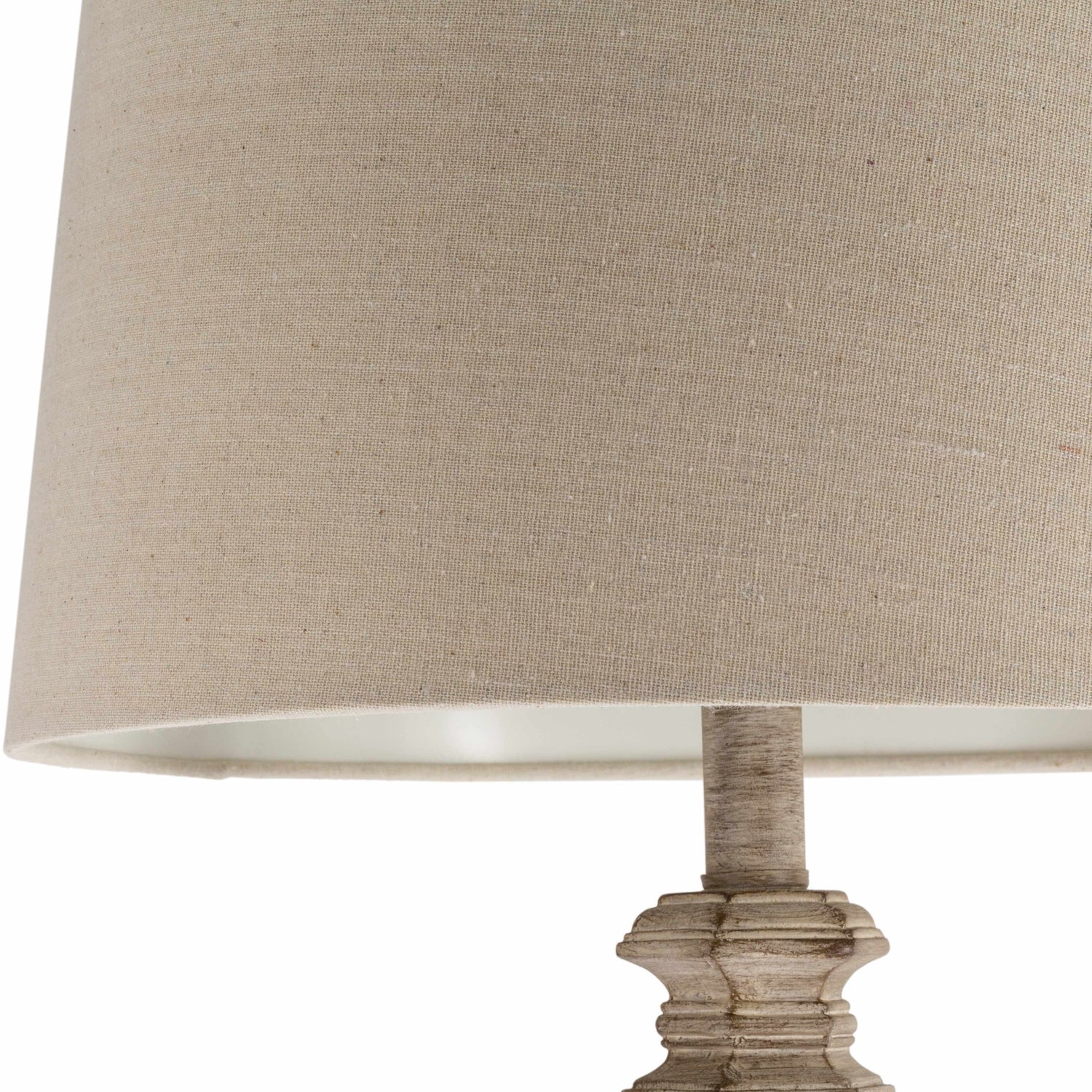 | Material: | Body: Resin / Base: Resin / Shade (Outside): Linen / Shade (Inside): Polyester / Finial: Resin |