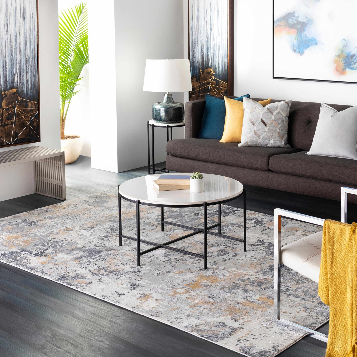 | Colors: | Charcoal, Mustard, Gray, Light Gray |