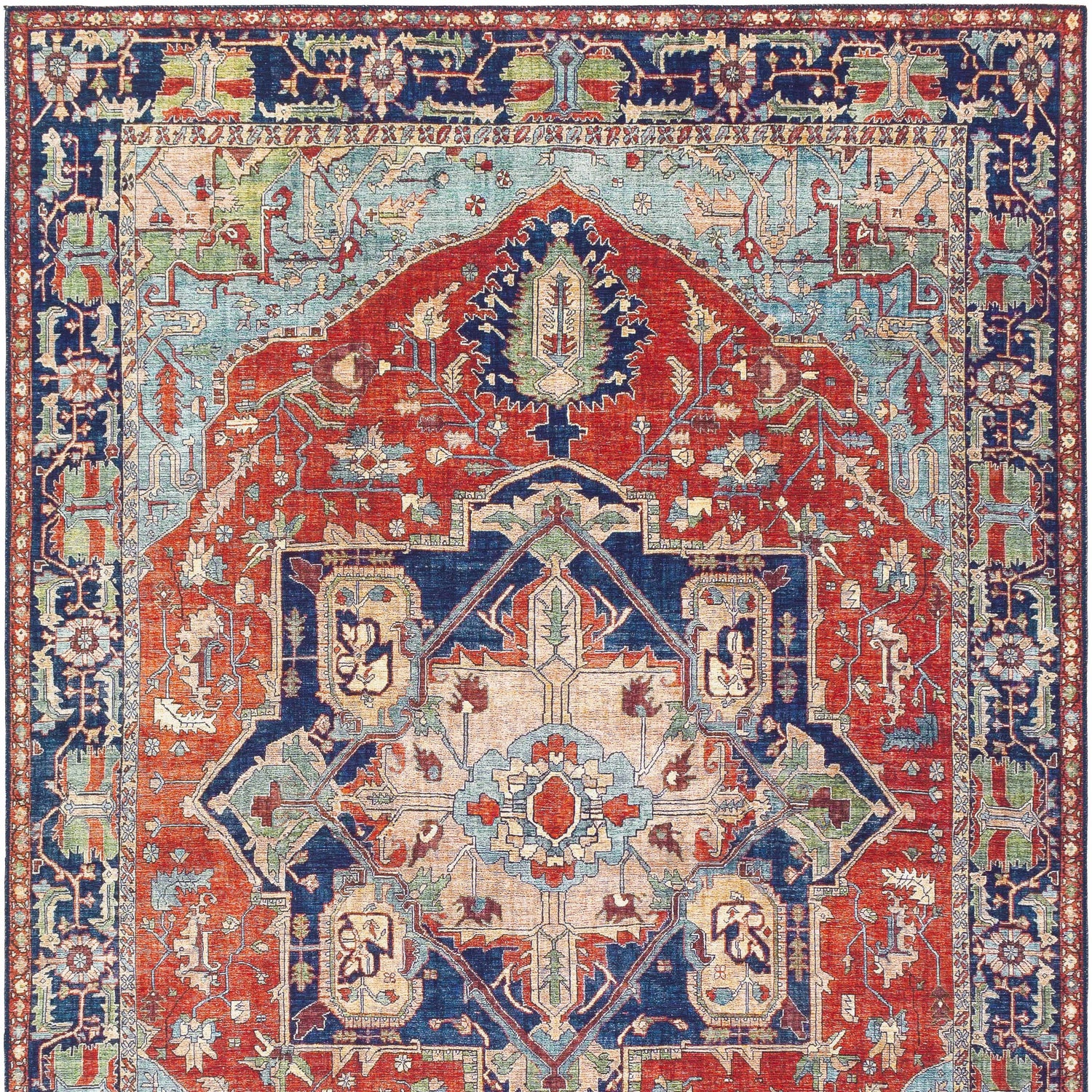 Colors: Green, Red, Burnt Orange, Navy, Teal, Pale Blue