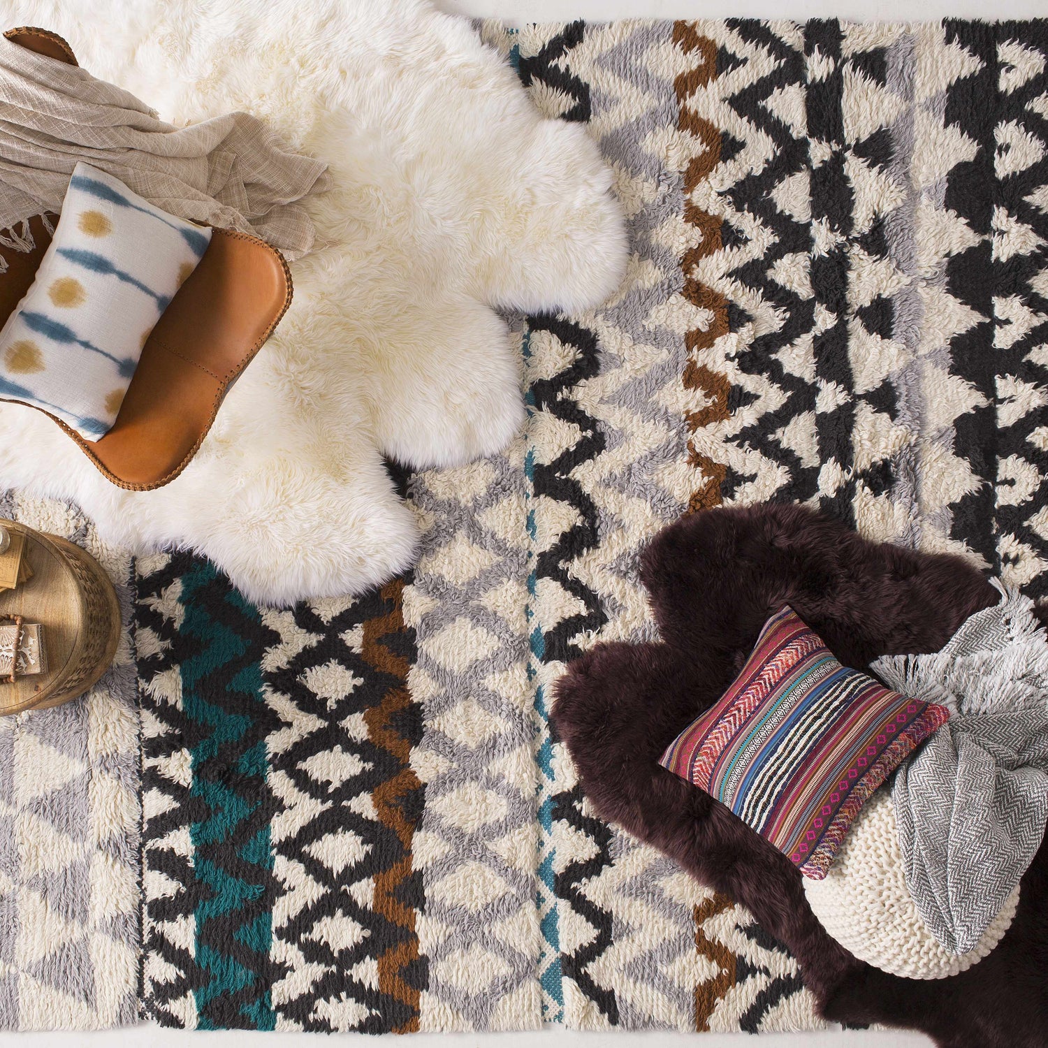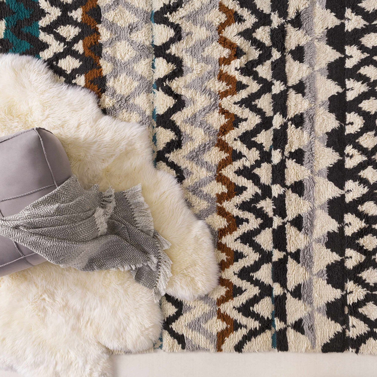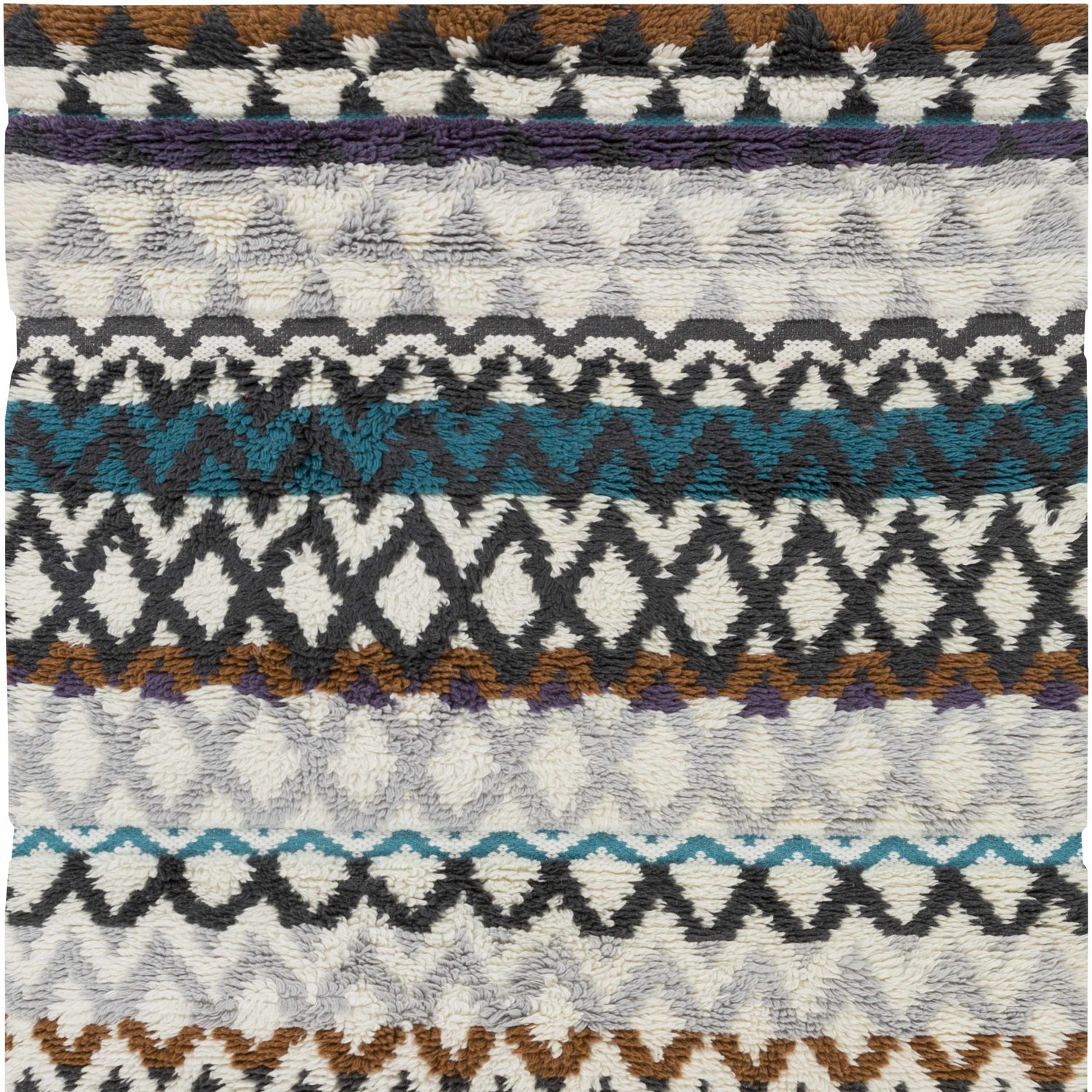 Colors: Aqua, Light Gray, Black, Burnt Orange, Ivory, Medium Purple