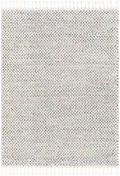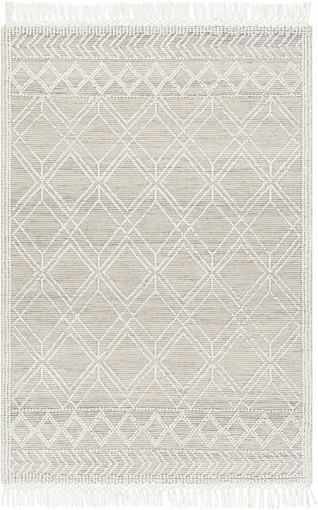 • Aviva Off-White Textured Rug with Fringes