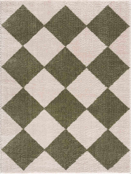 Arilla Green Washable Diamond Area Rug