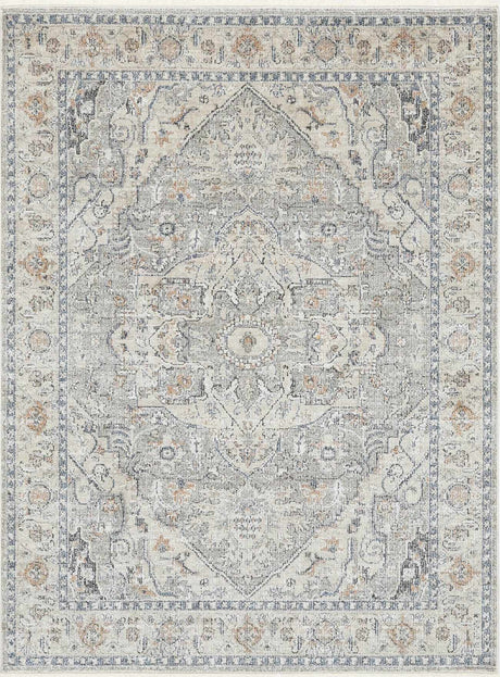 Nimue Cream & Blue Bordered Area Rug - Clearance