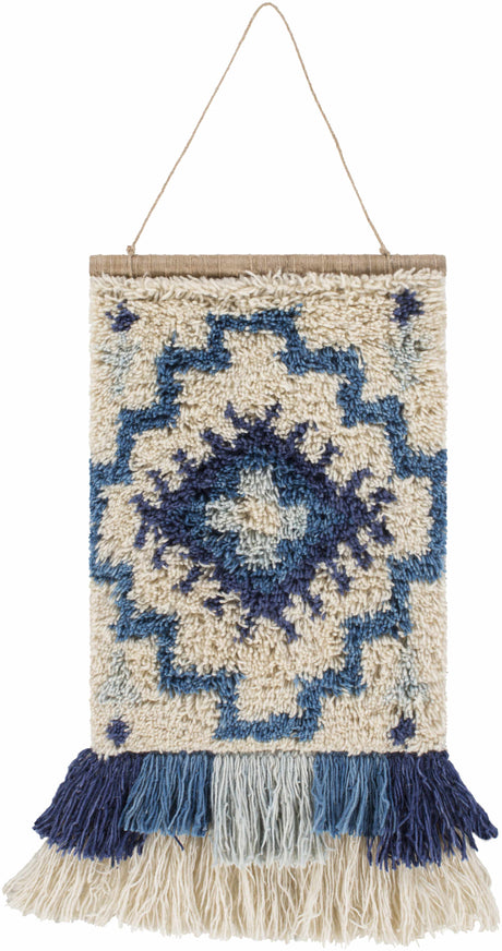 Philomont Ivory and Blue Geometric Wall Hanging