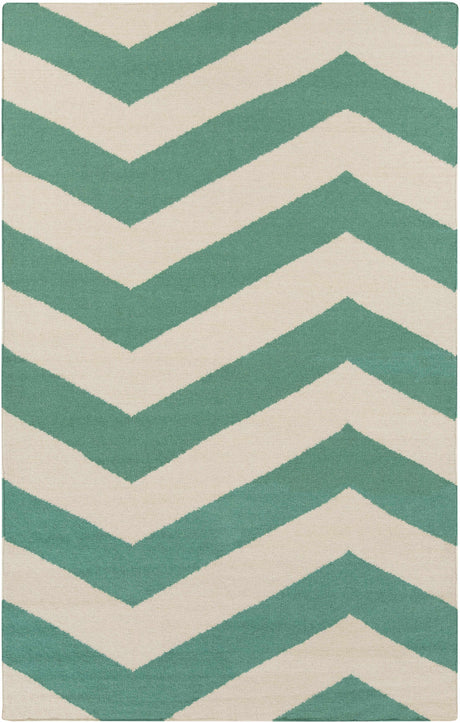 Padada Green Bordered Cream Wool Rug