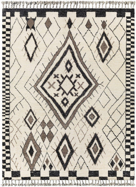 Nimue Cream & Charcoal Bordered Area Rug - Clearance